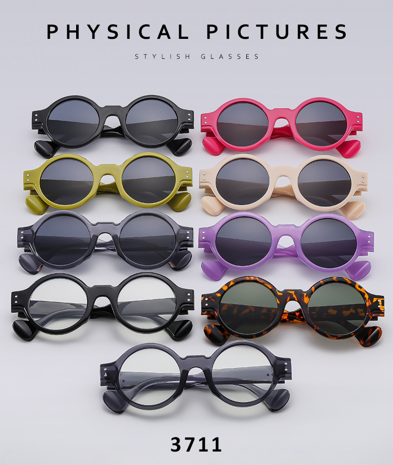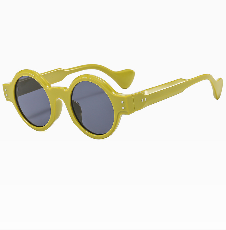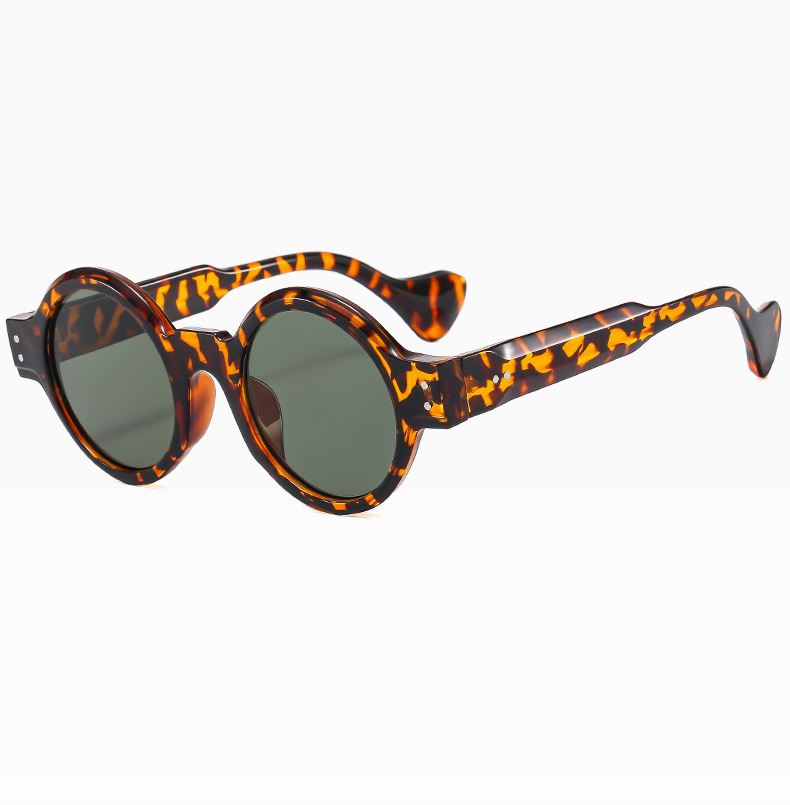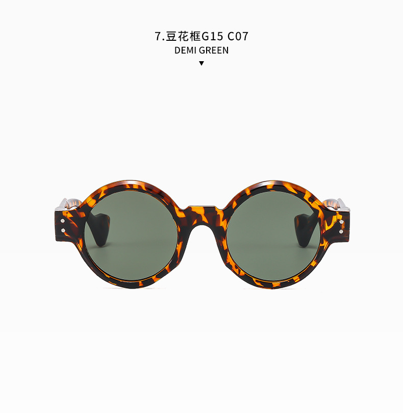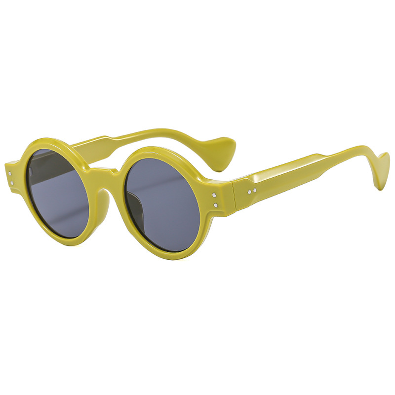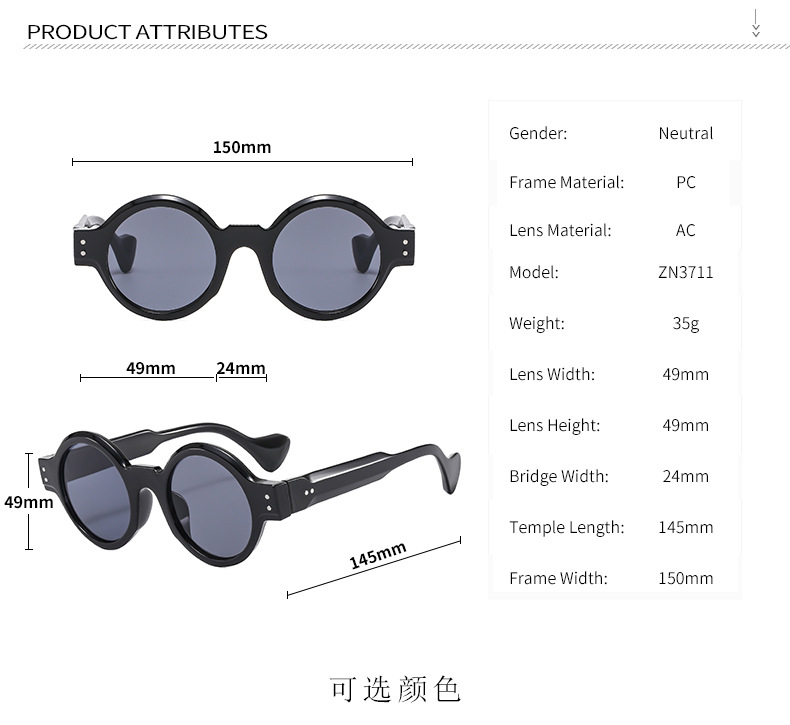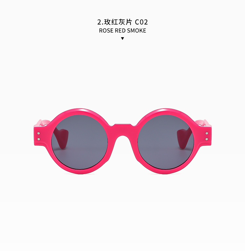 欧美经典圆形朋克休闲太阳镜时尚米钉粗腿墨镜男女潮百搭简约墨镜