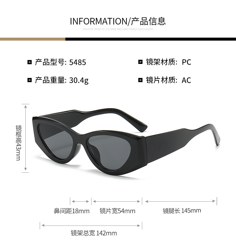 2024年个性厚框嘻哈5485猫眼辣妹时尚墨镜拽姐必备防紫外线太阳镜