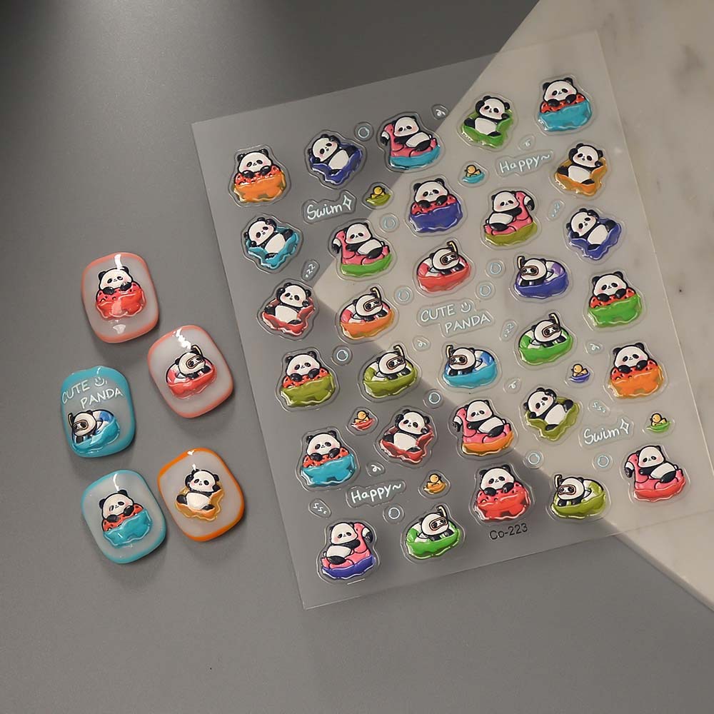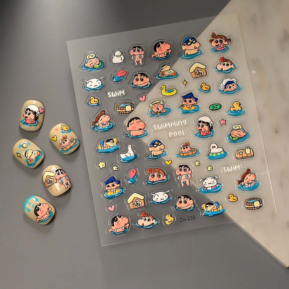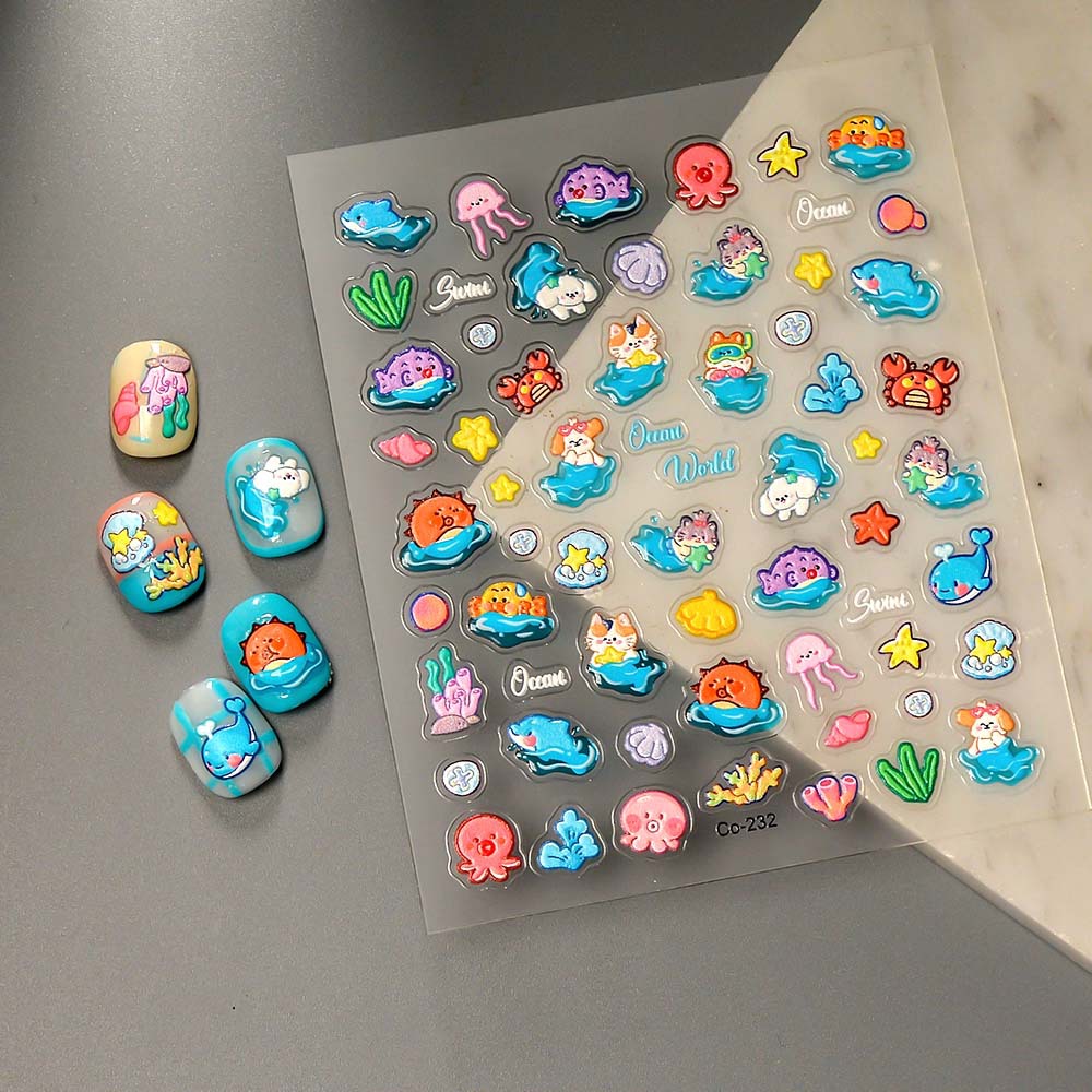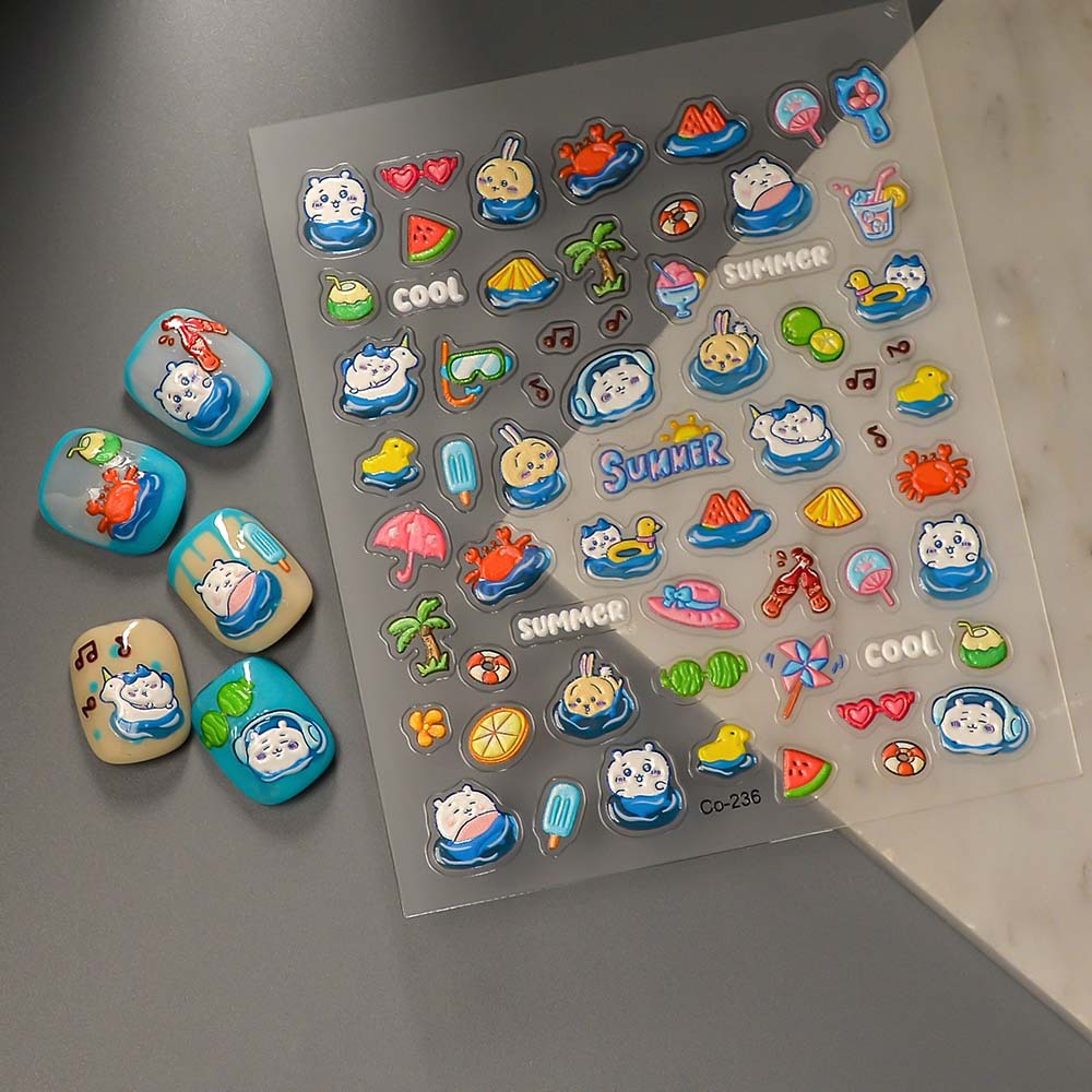 新工艺日韩果冻美甲贴纸可爱小动物游泳池指甲贴工厂休闲度假