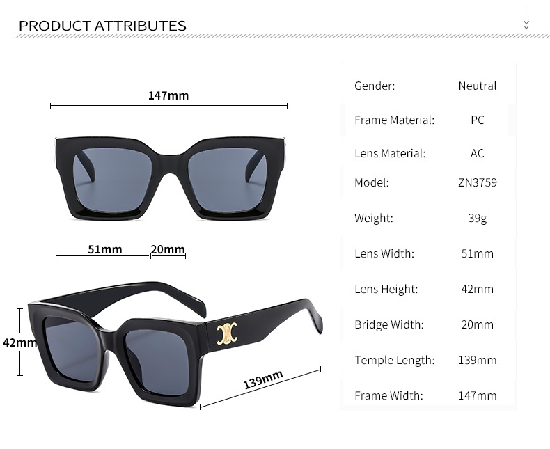 凯旋门墨镜女防紫外线方形大框眼镜ins大脸遮阳太阳镜 2024网红款