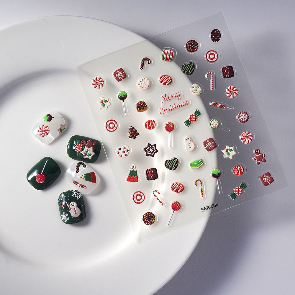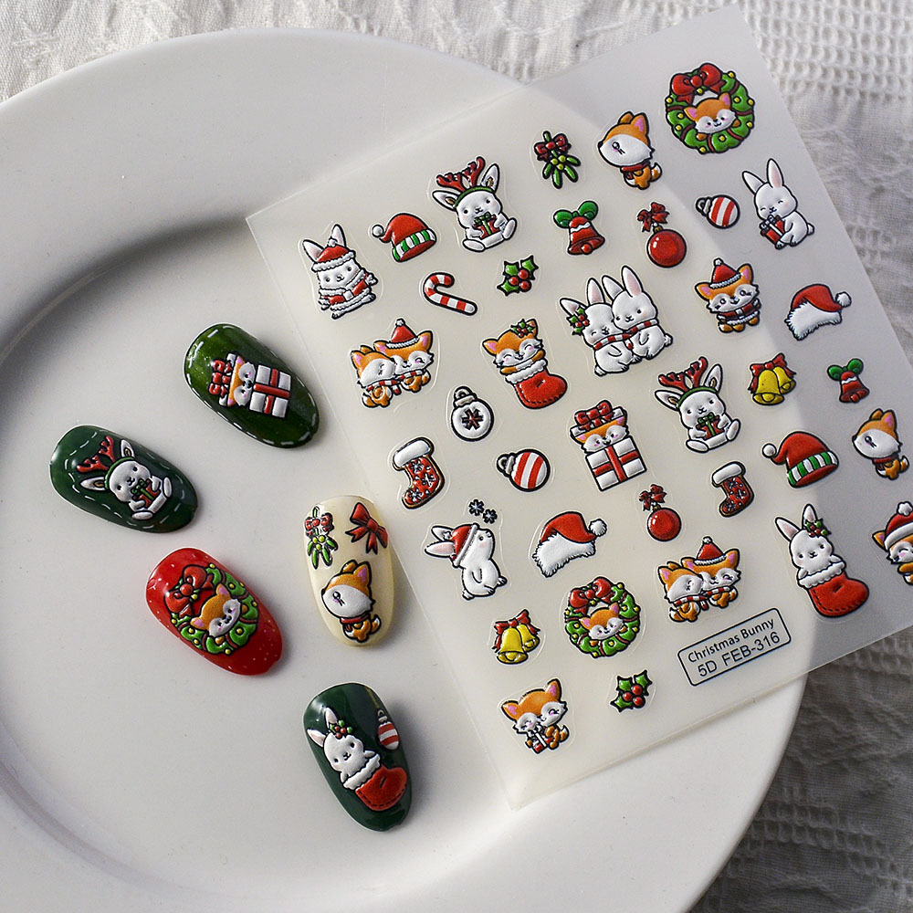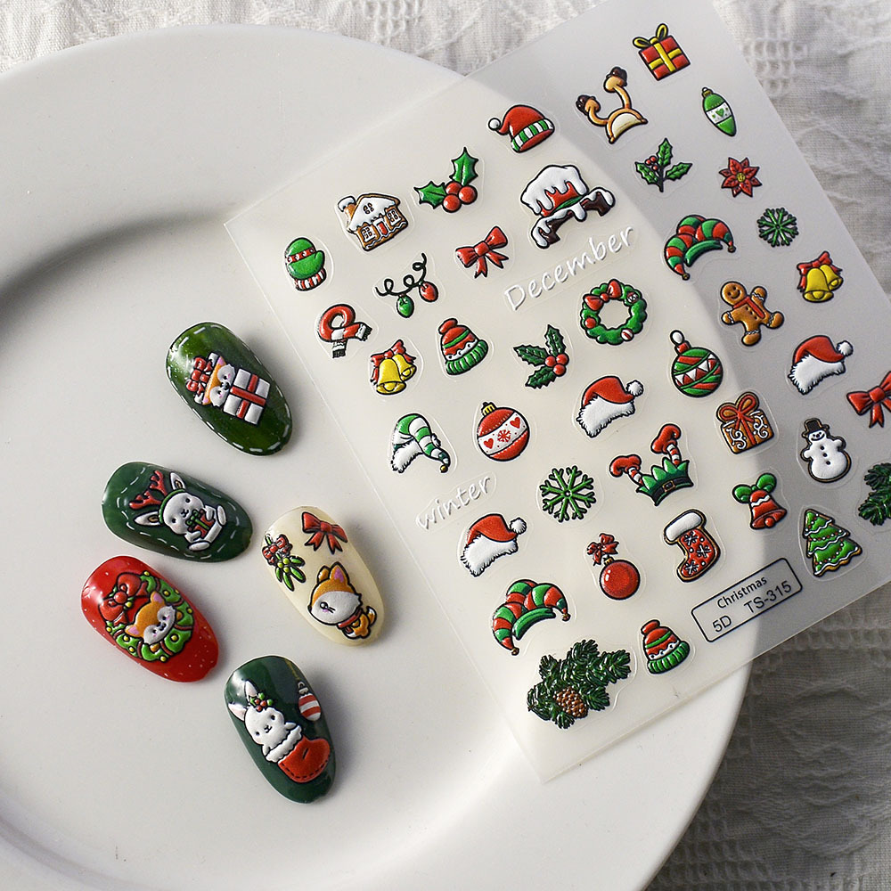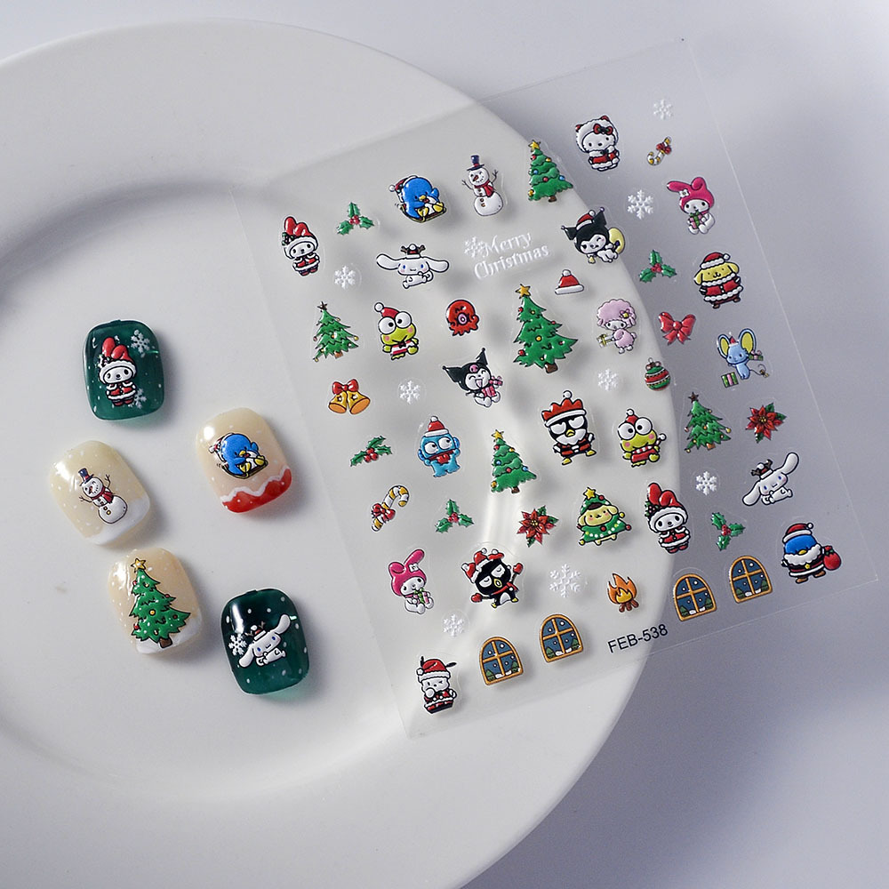 欧美狂欢 圣诞指甲贴纸 穿戴美甲 猫眼美甲贴纸卡通浮雕立体工艺