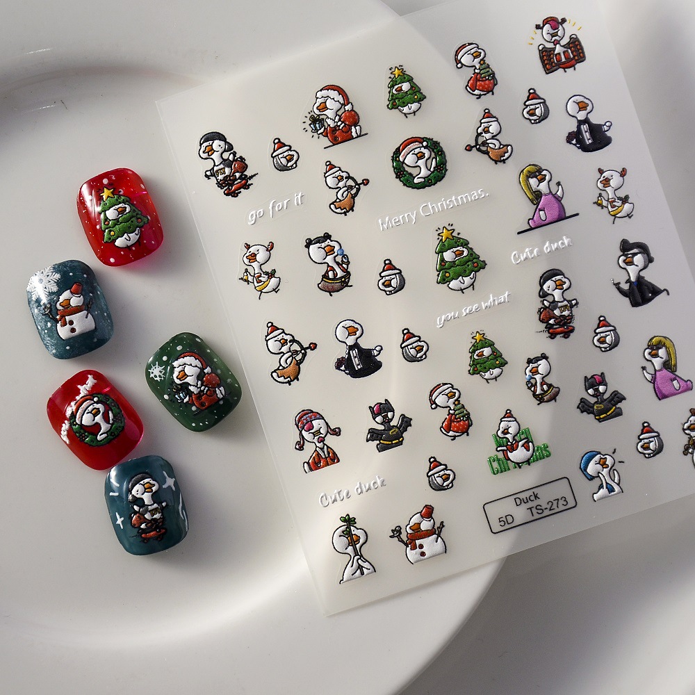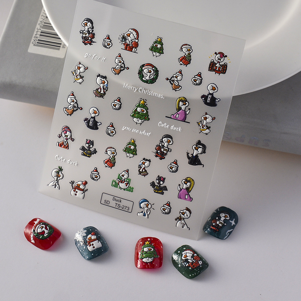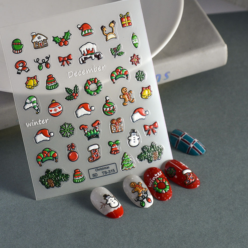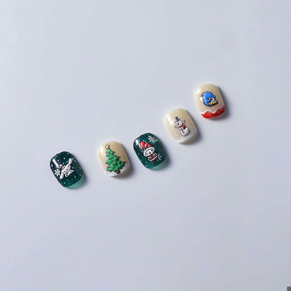 欧美狂欢 圣诞指甲贴纸 穿戴美甲 猫眼美甲贴纸卡通浮雕立体工艺
