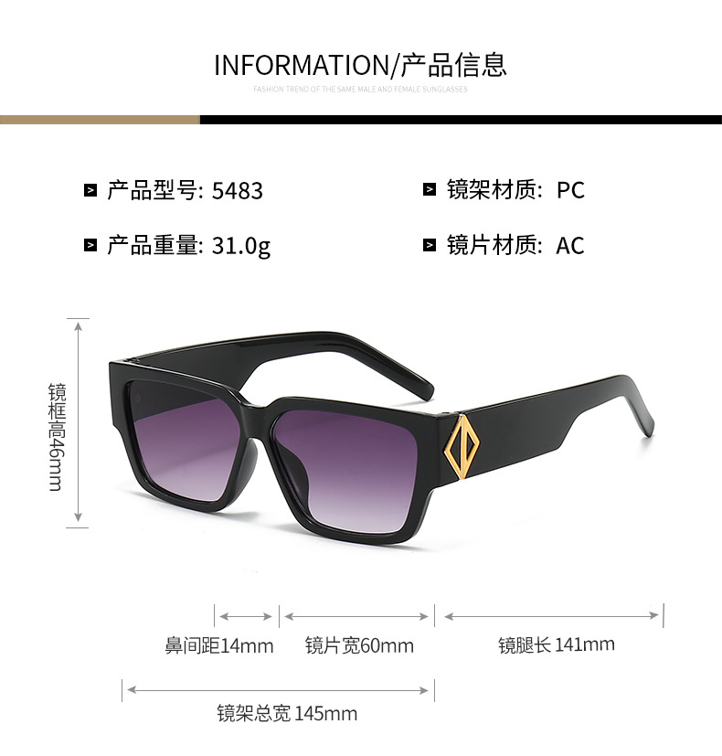 2024年拽姐时尚5483个性嘻哈厚框墨镜欧美辣妹街拍防紫外线太阳镜