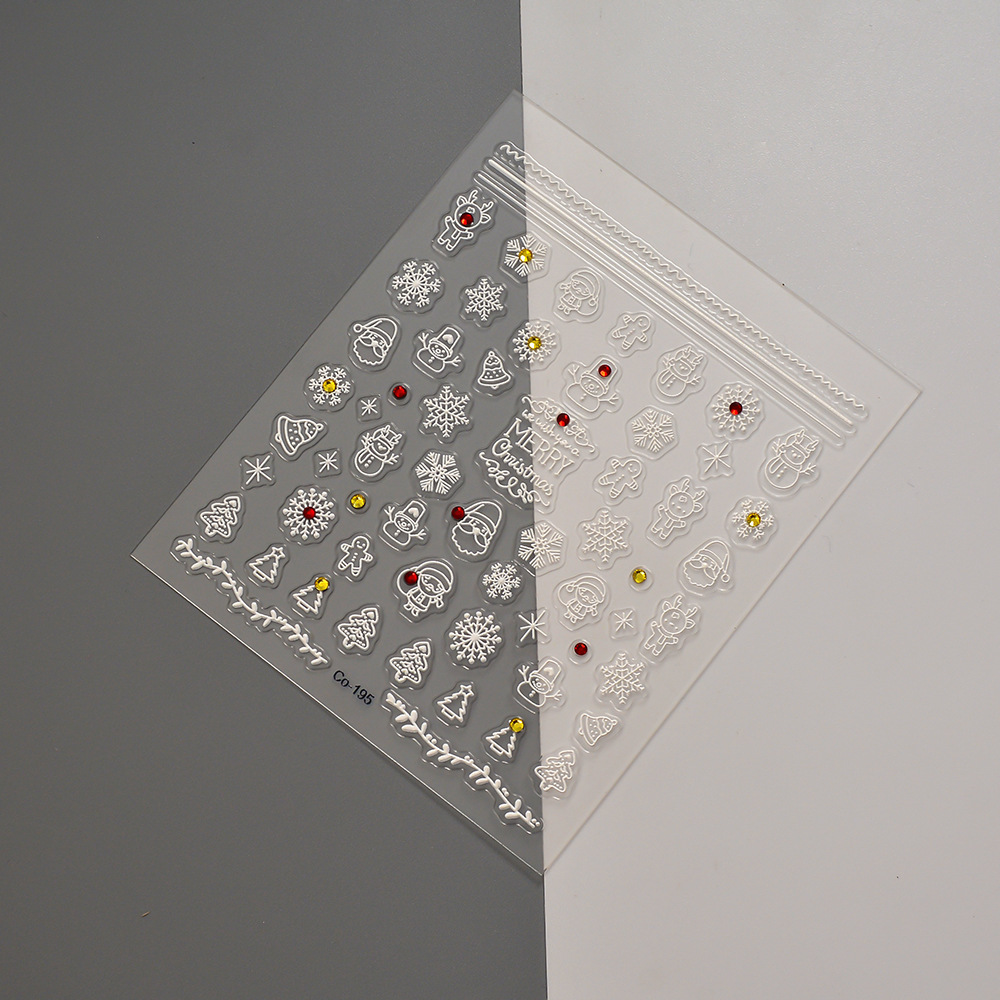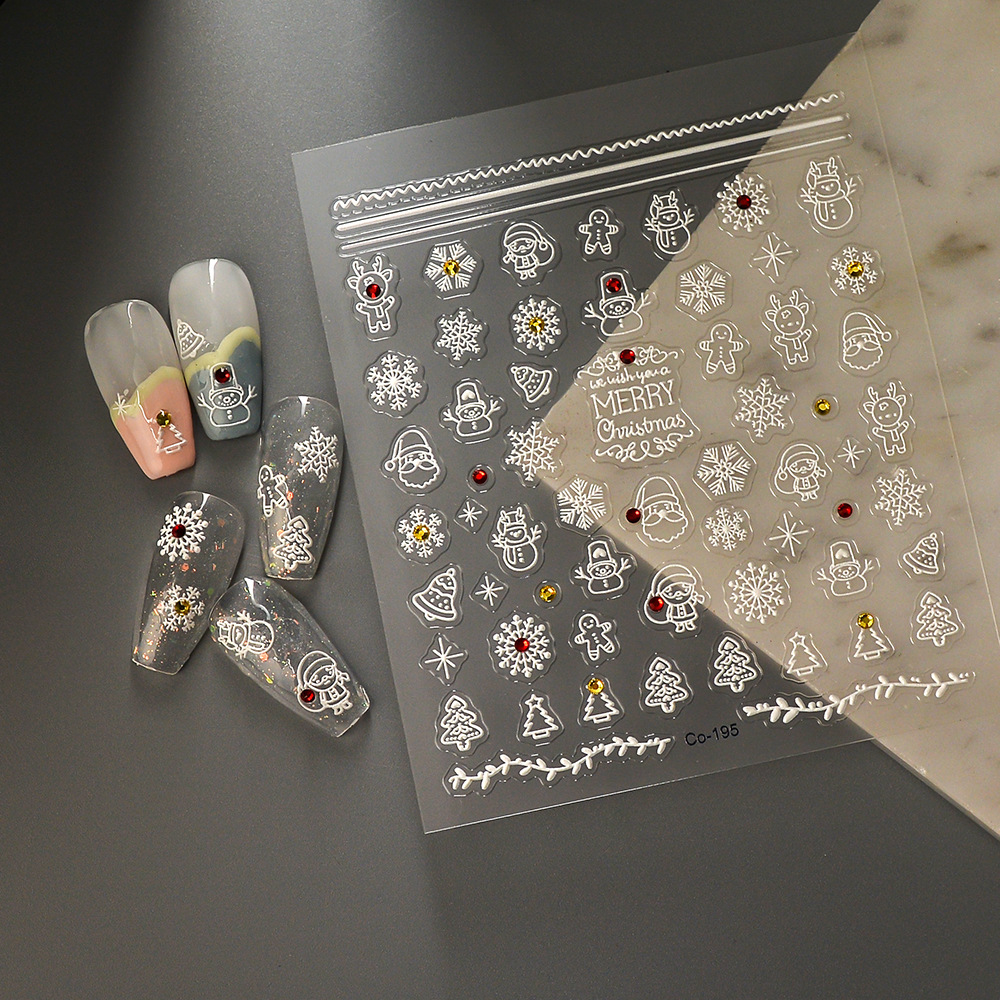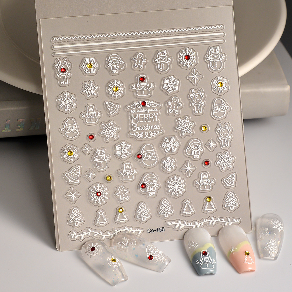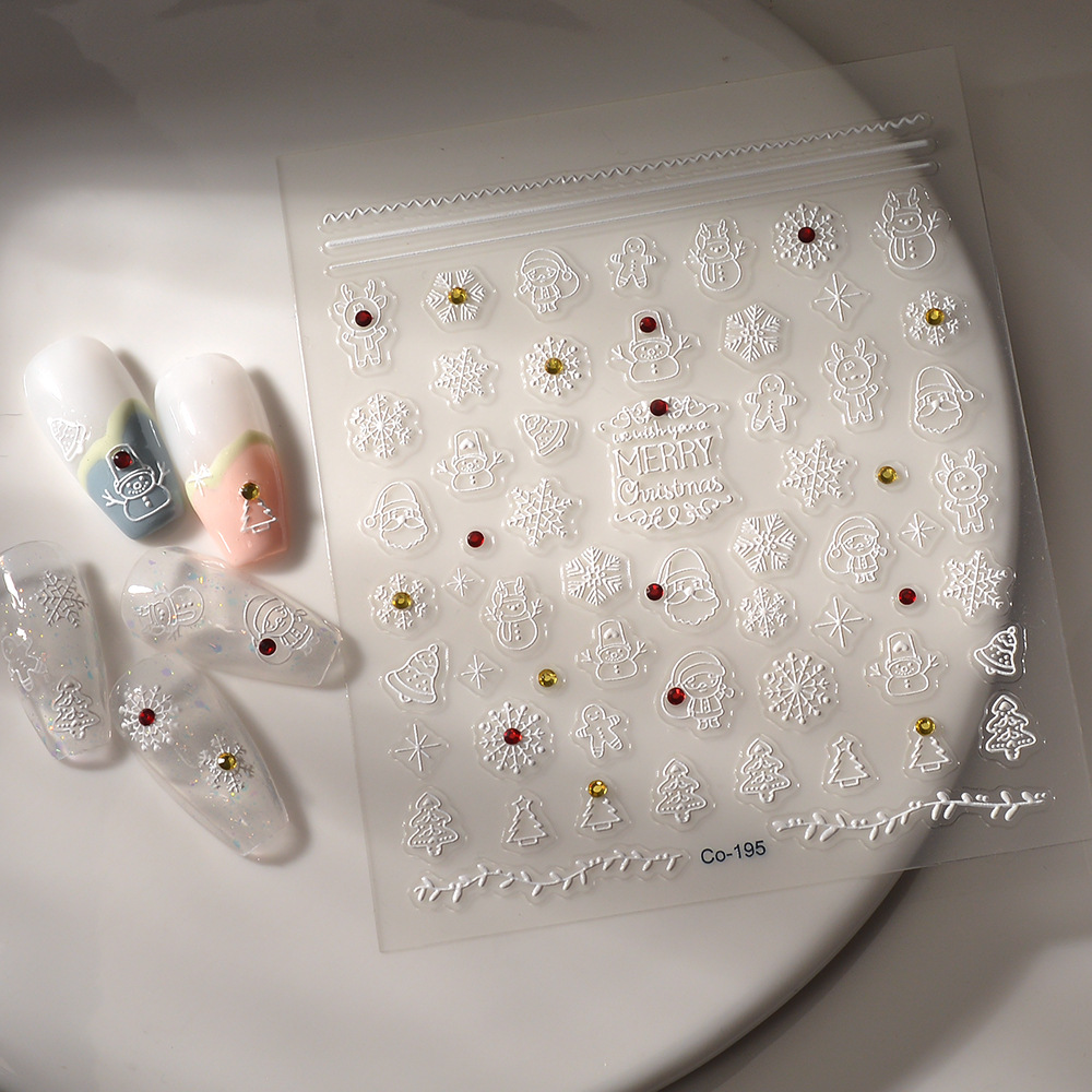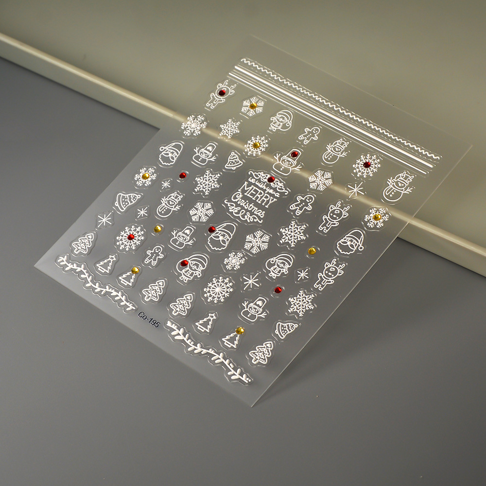 跨境圣诞节贴纸DIY晶钻浮雕美甲贴纸5D圣诞老人雪花纯色指甲贴钻