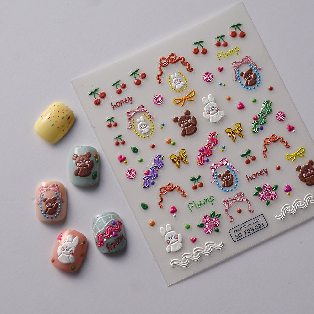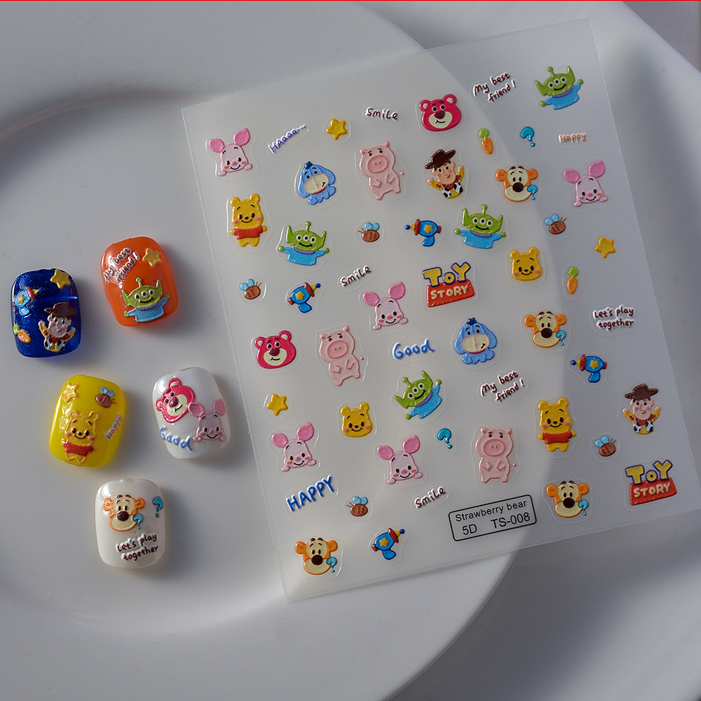 新工艺立体5D美甲贴纸蜂蜜小熊浮雕贴纸卡通动物指甲贴可混批发