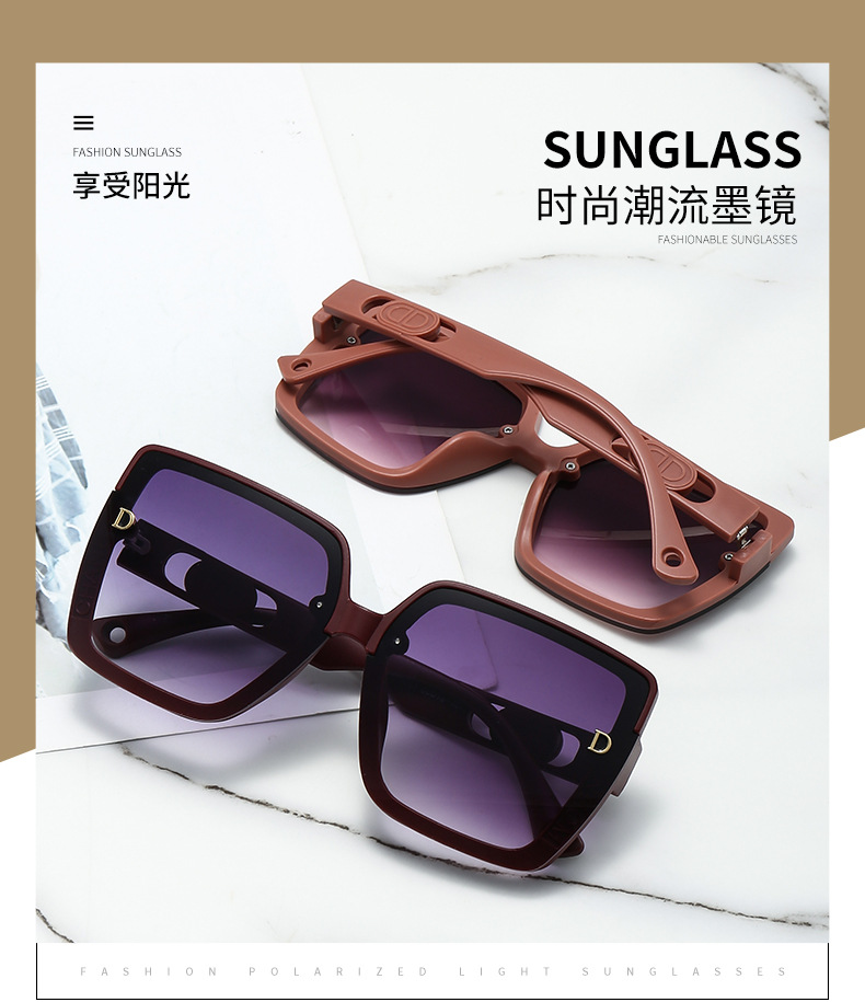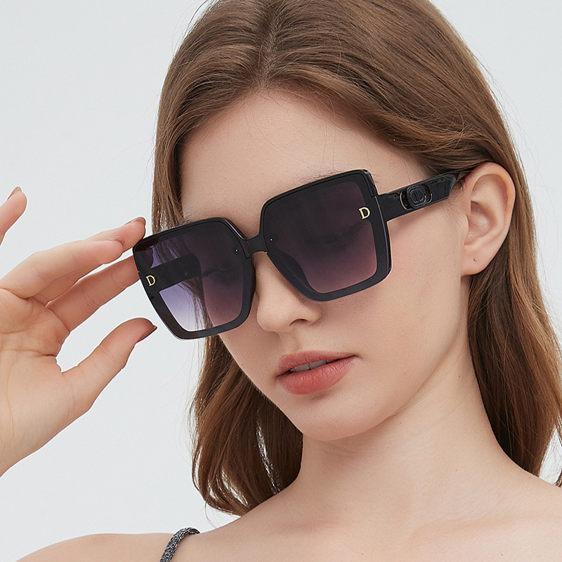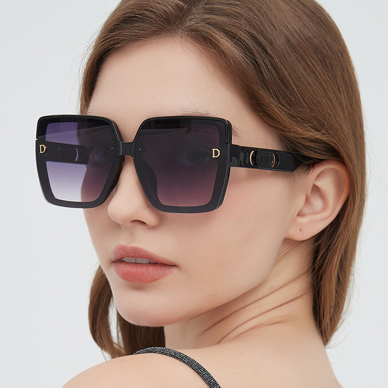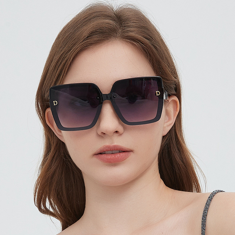 2024年时髦多边形夸张大框叠戴D墨镜小众时尚高级防紫外线太阳镜