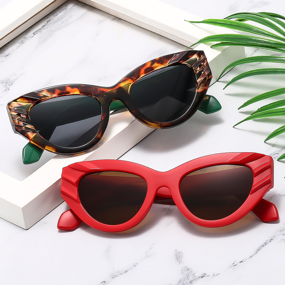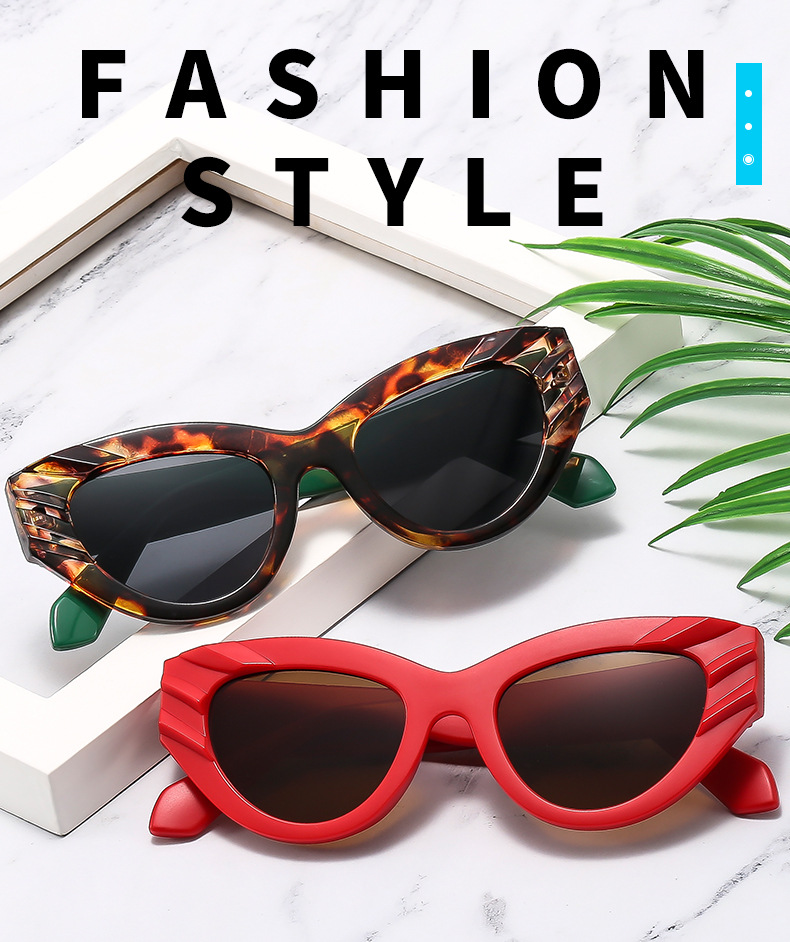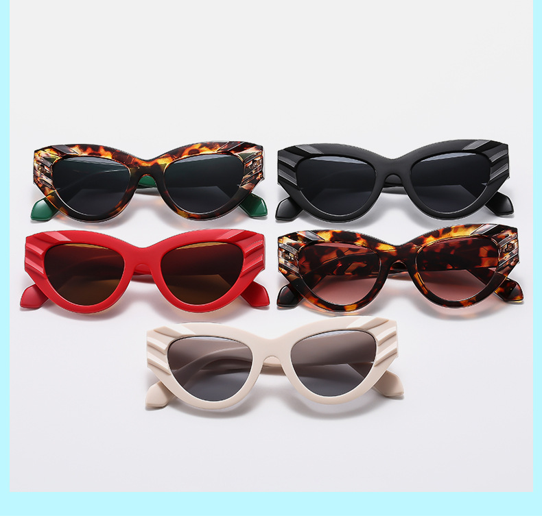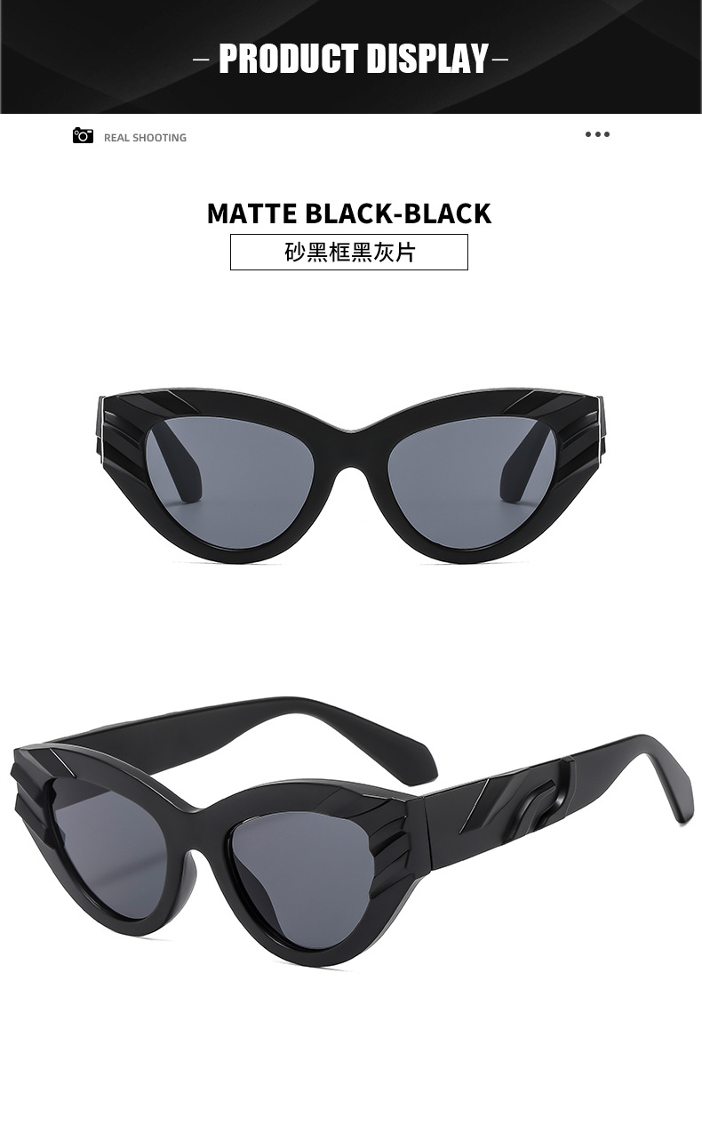 2024跨境新款防晒小脸高级感欧美猫眼复古墨镜女潮个性PC太阳镜男