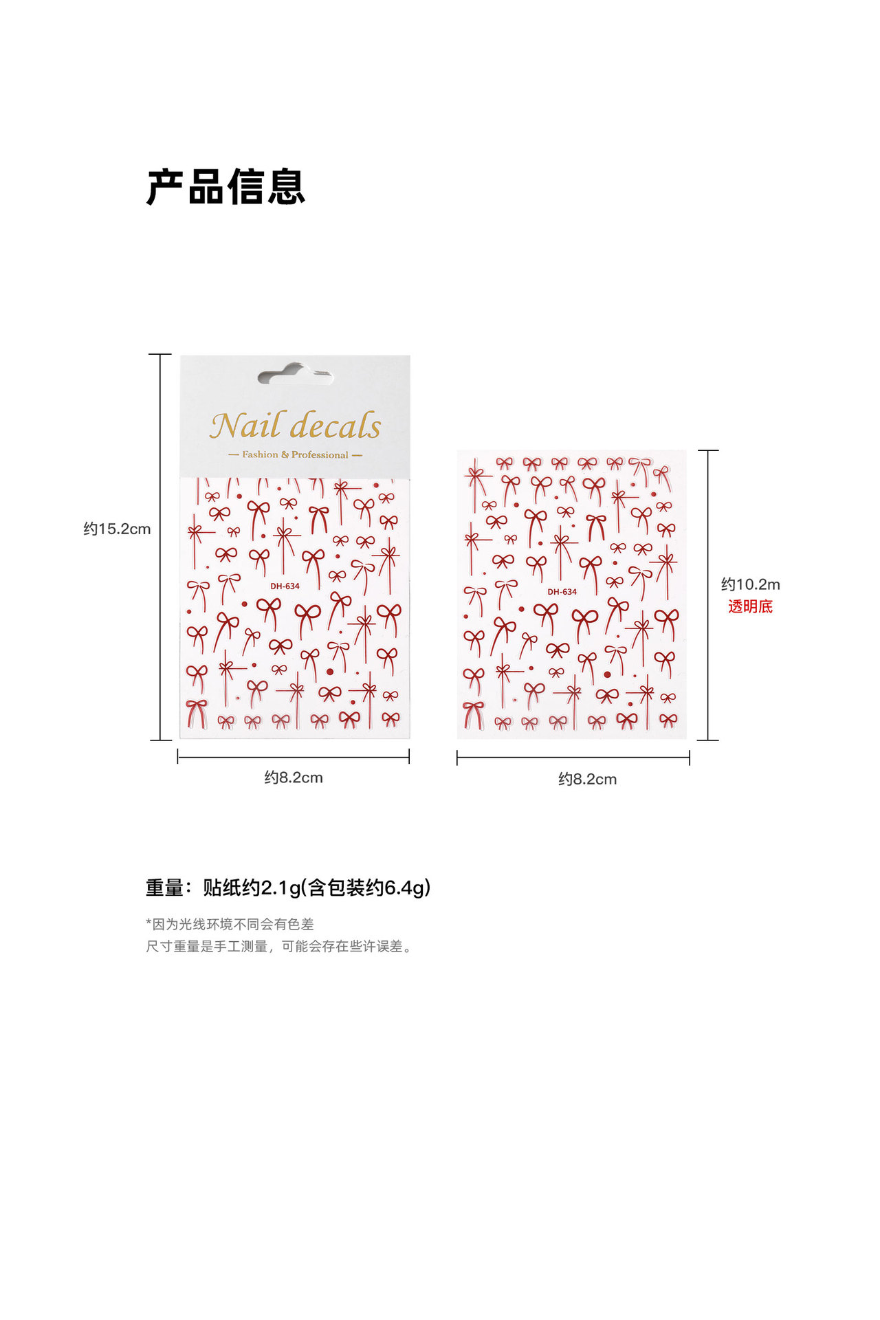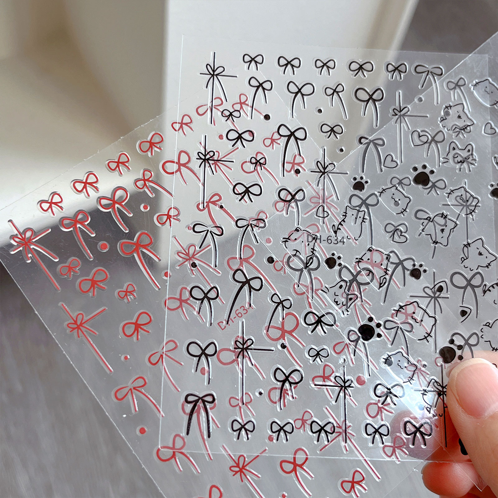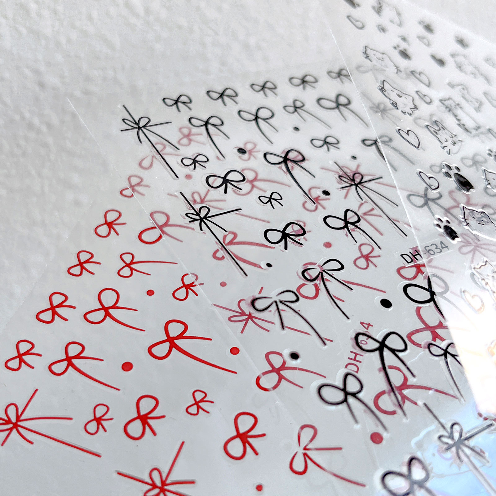 网红爆款蝴蝶结美甲贴纸可爱猫咪线条贴纸红色蝴蝶结指甲装饰批发