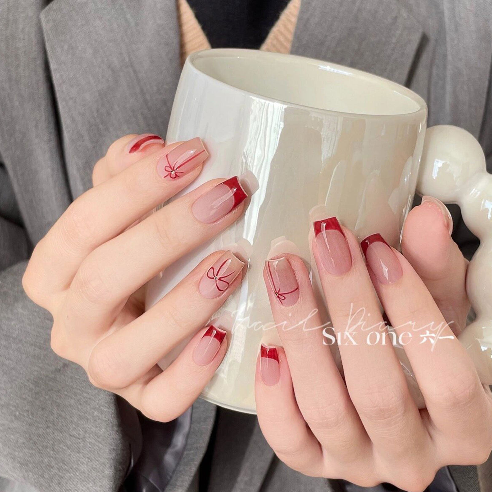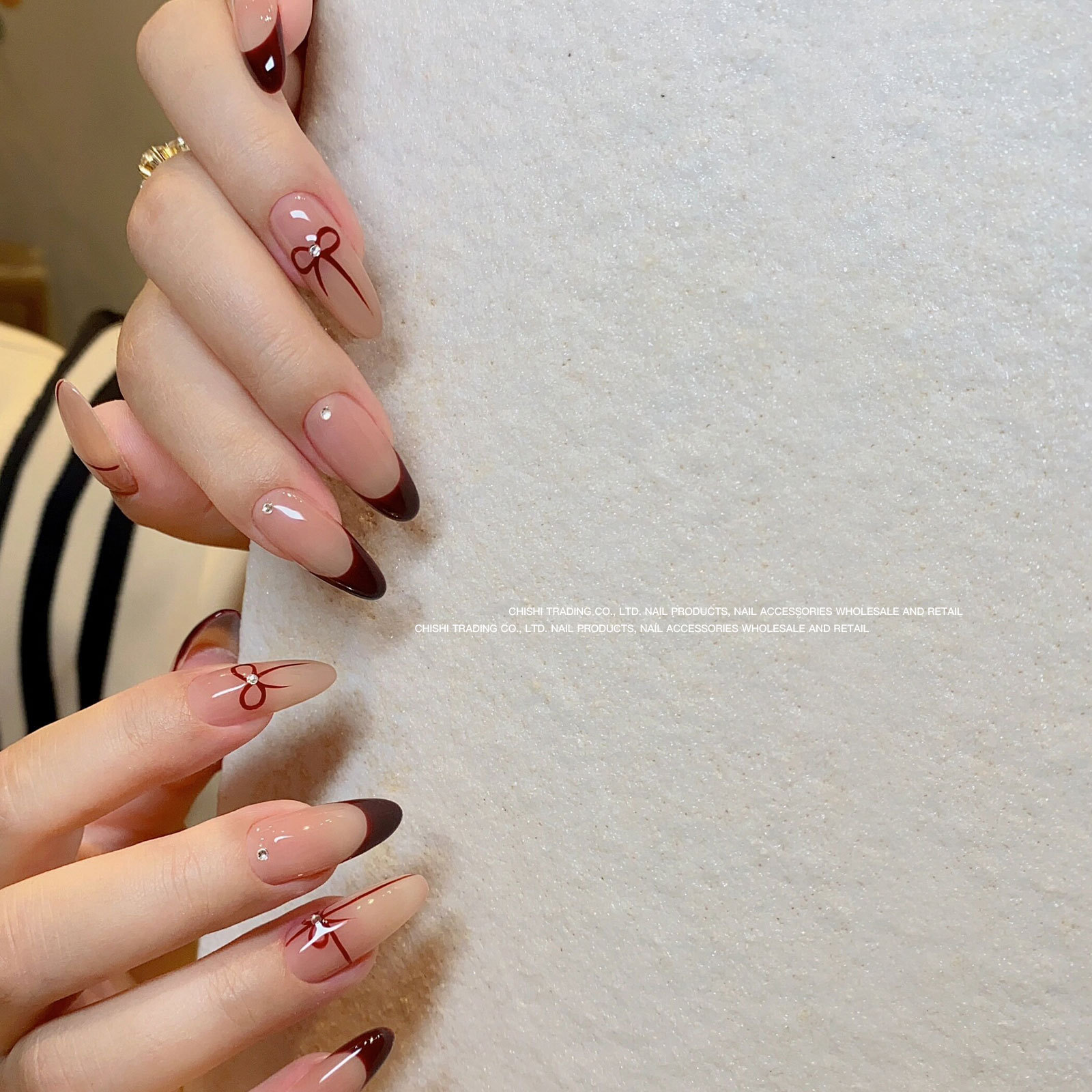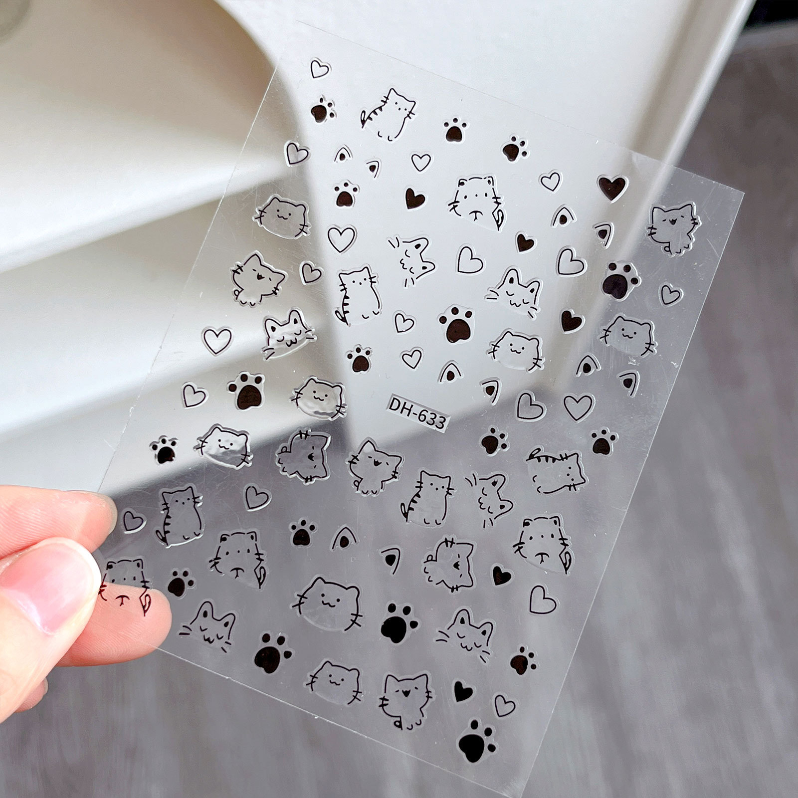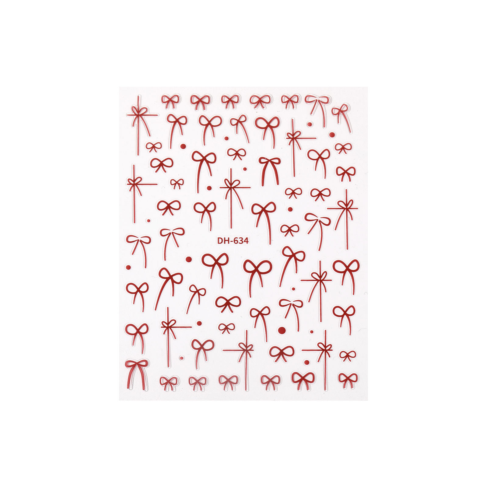 网红爆款蝴蝶结美甲贴纸可爱猫咪线条贴纸红色蝴蝶结指甲装饰批发