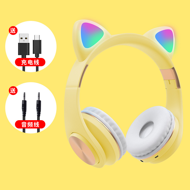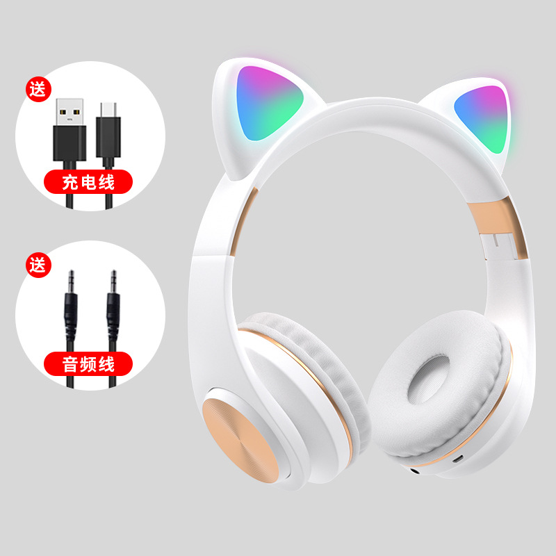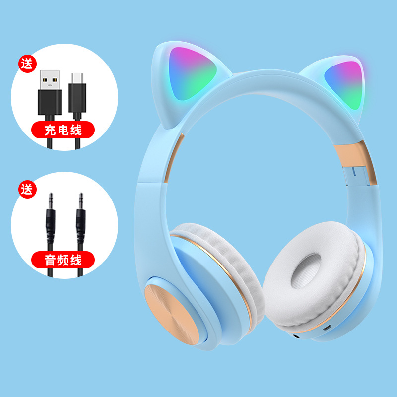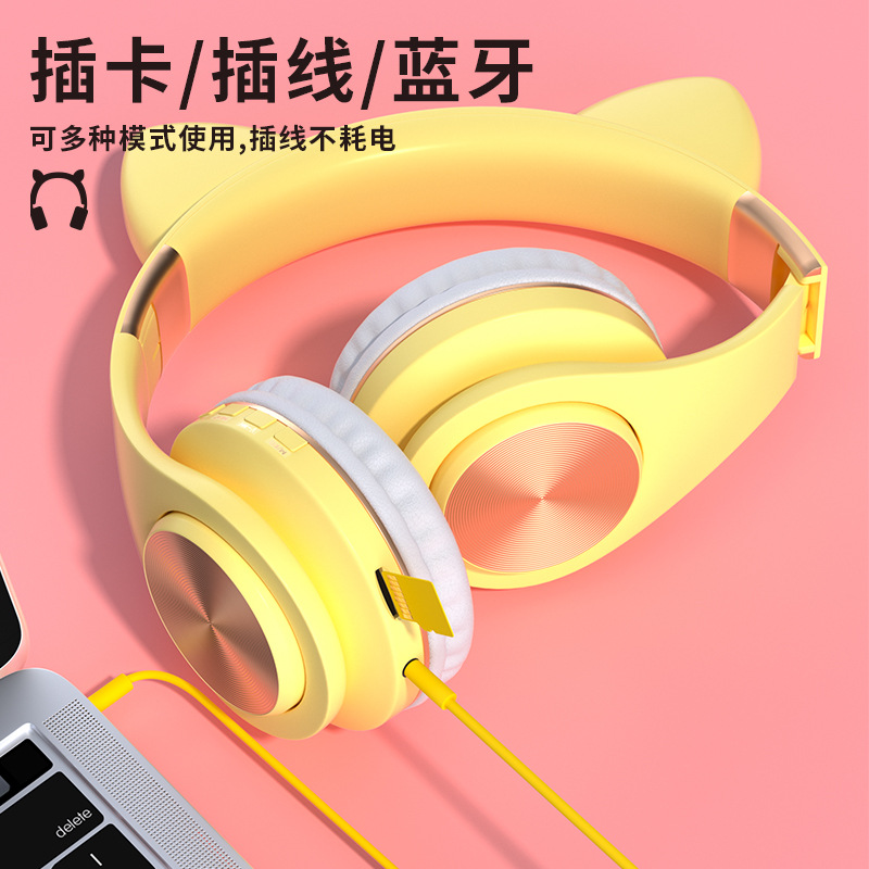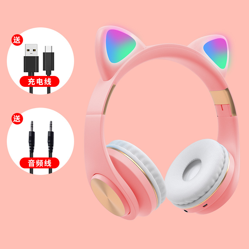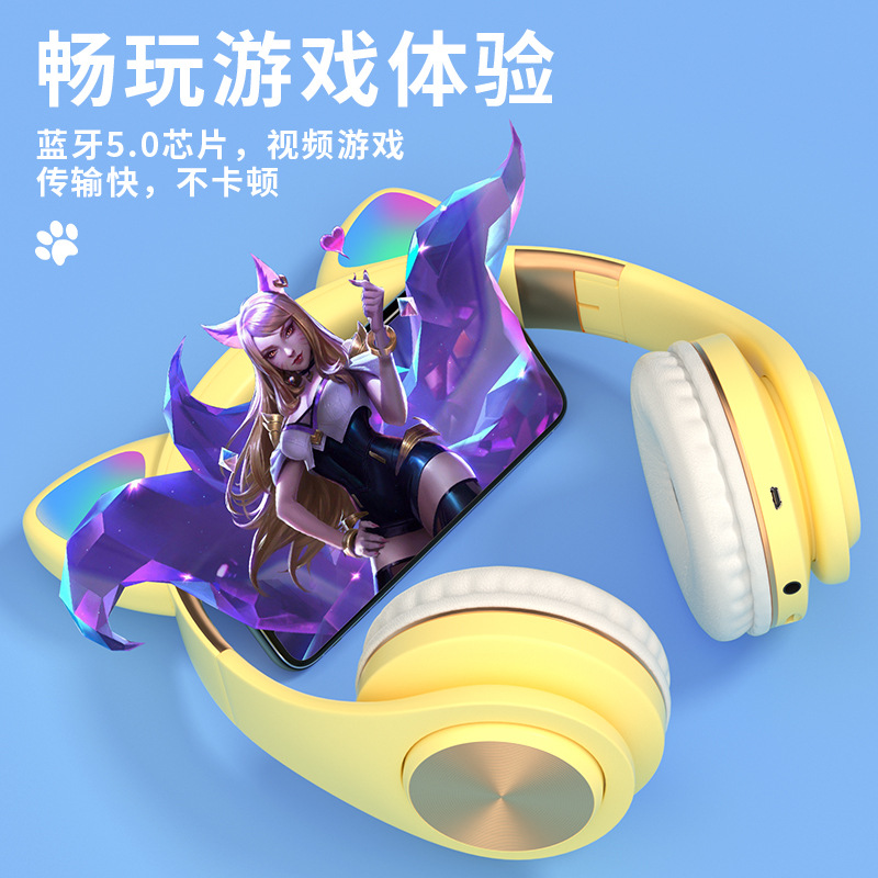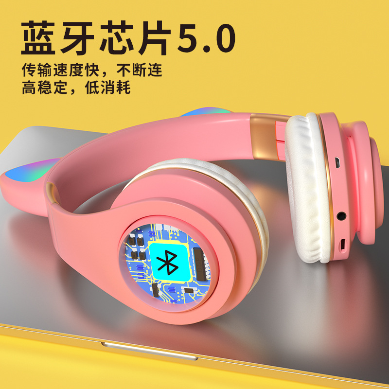 跨境M1猫耳朵发光蓝牙耳机直播头戴马卡龙音乐立体声无线蓝牙耳麦