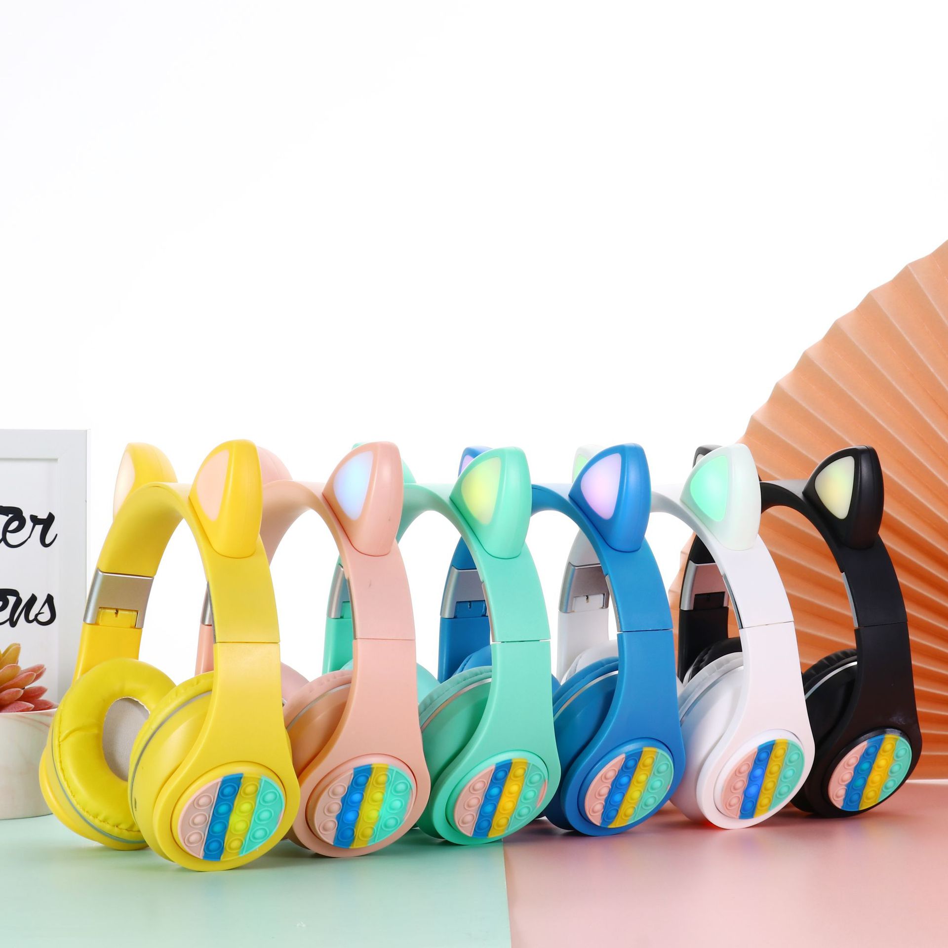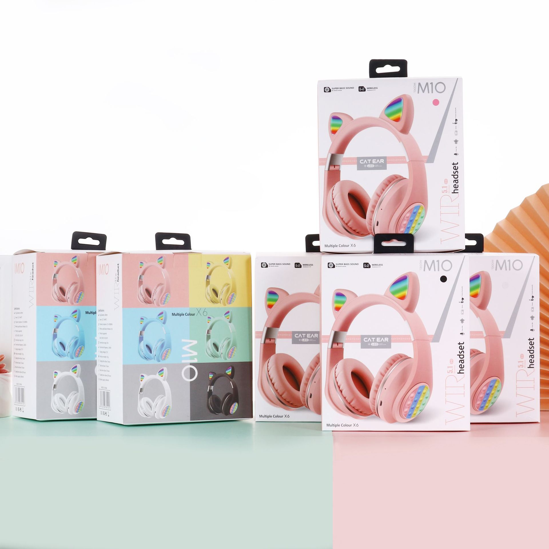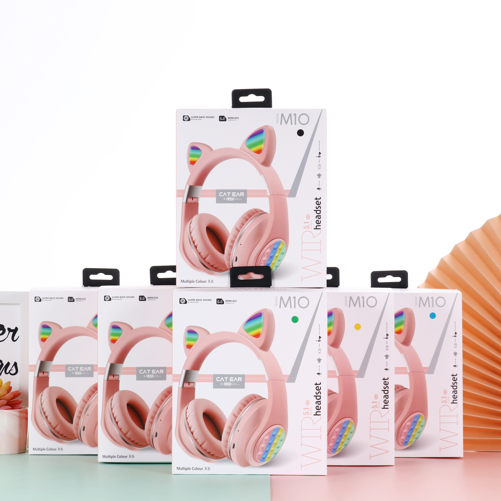 跨境爆款头戴式无线耳麦猫耳朵M10发光减压款无线蓝牙耳机可折叠