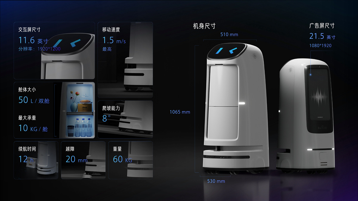 自动回充 智能酒店送物机器人 送货送物送水送外卖自主领位乘梯