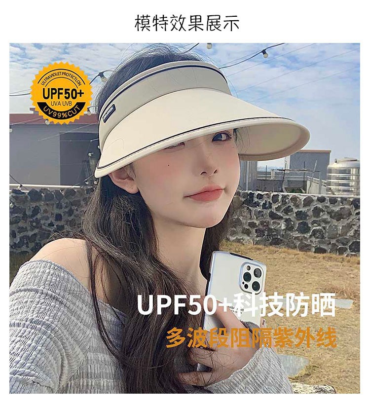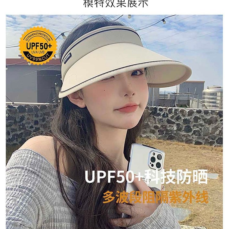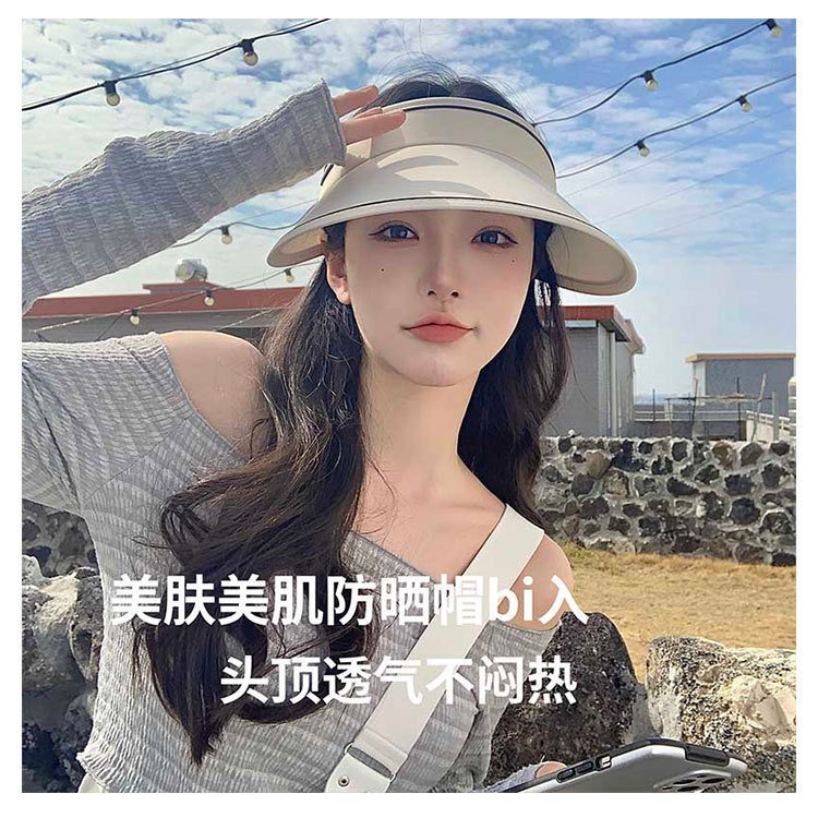 夏防晒空顶帽子女加宽帽檐遮脸太阳帽户外骑车防紫外线大沿遮阳帽
