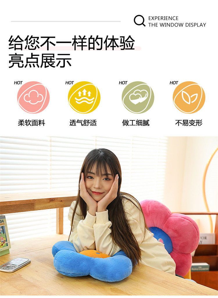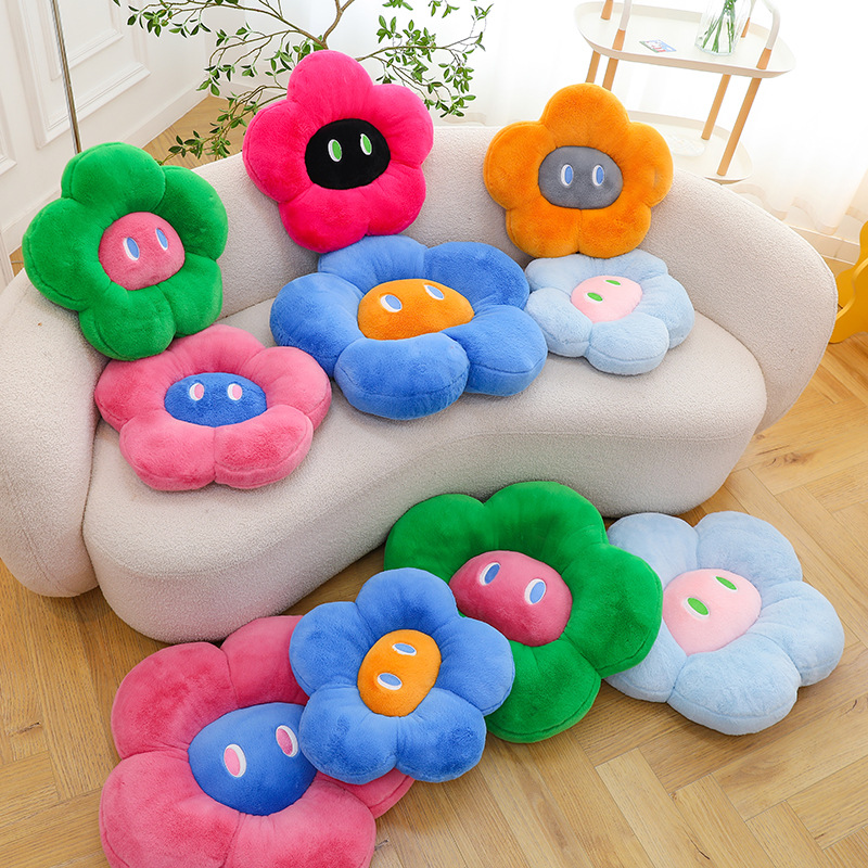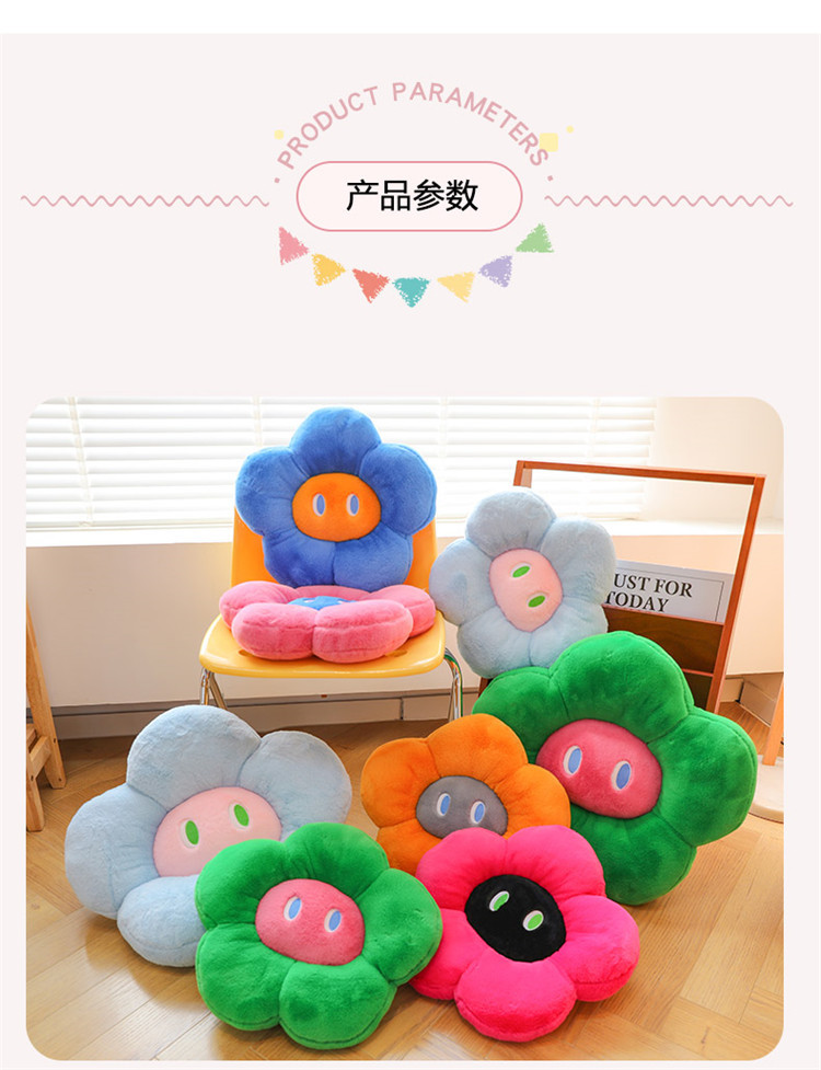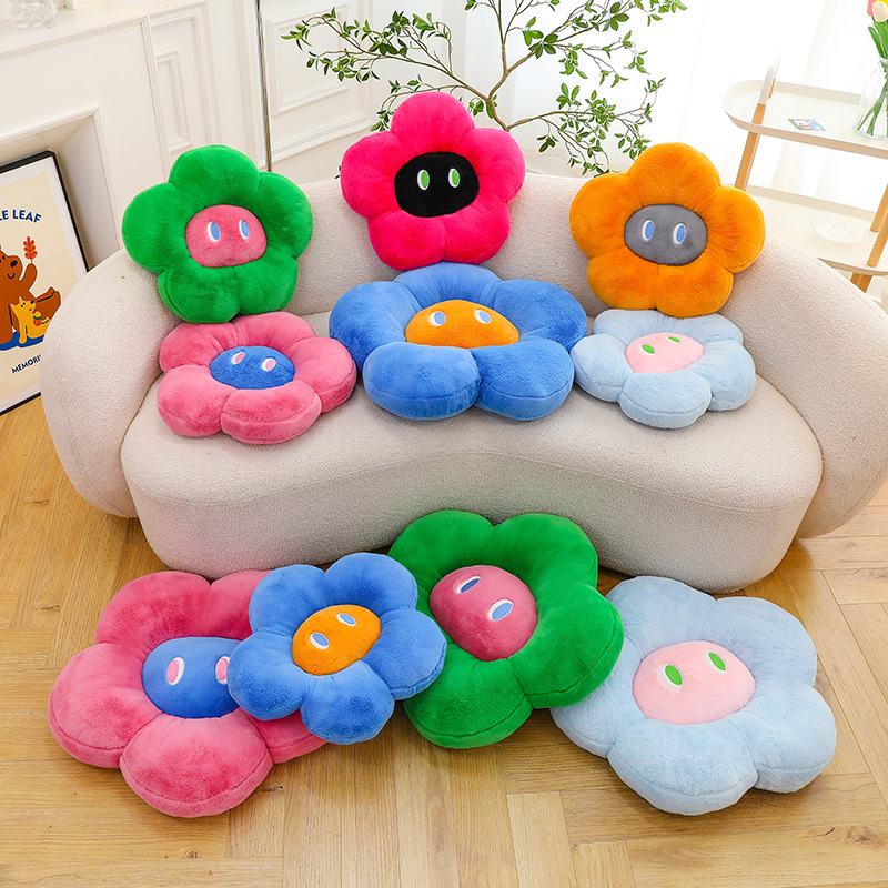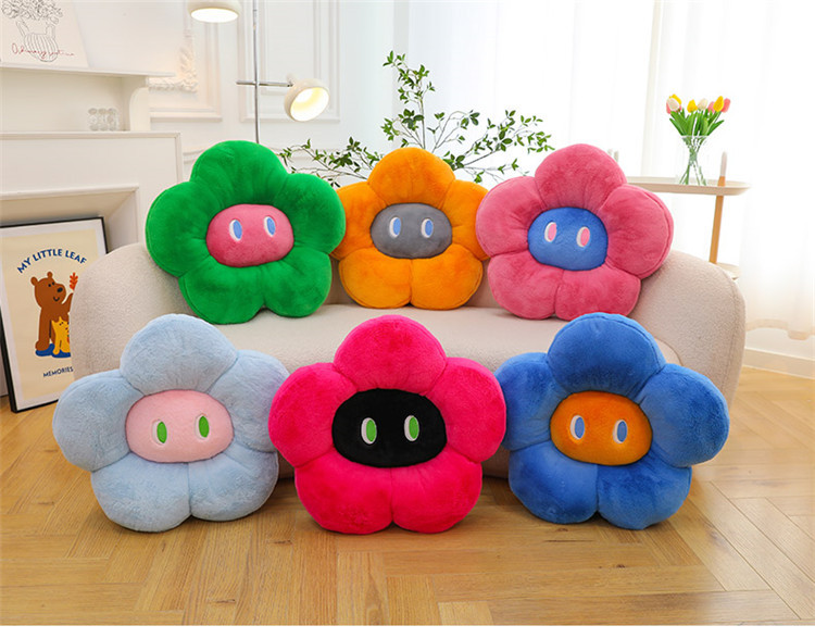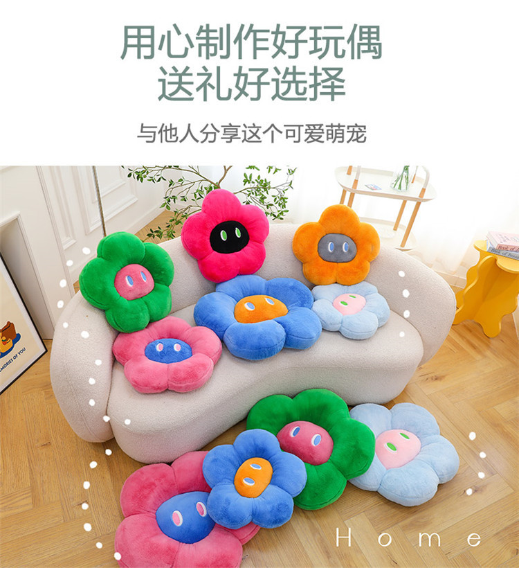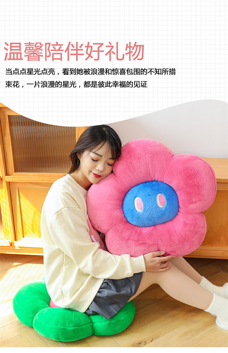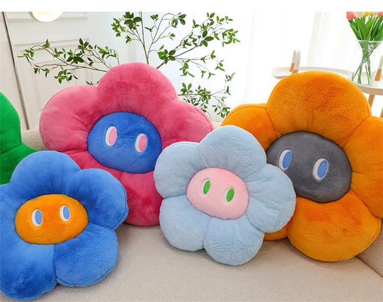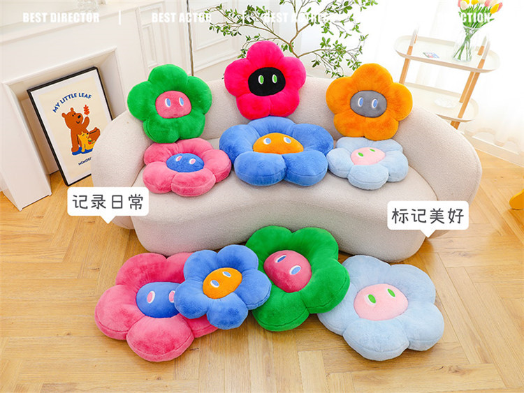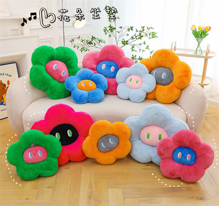 跨境多巴胺花朵坐垫毛绒玩具外贸表情沙发靠垫可爱摆件抓机娃娃批