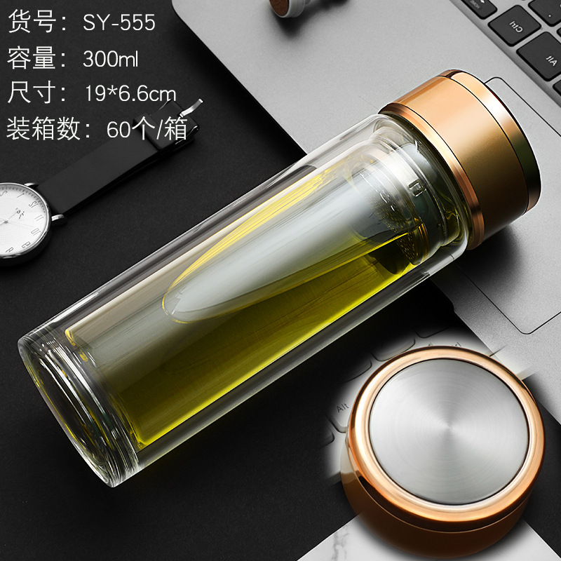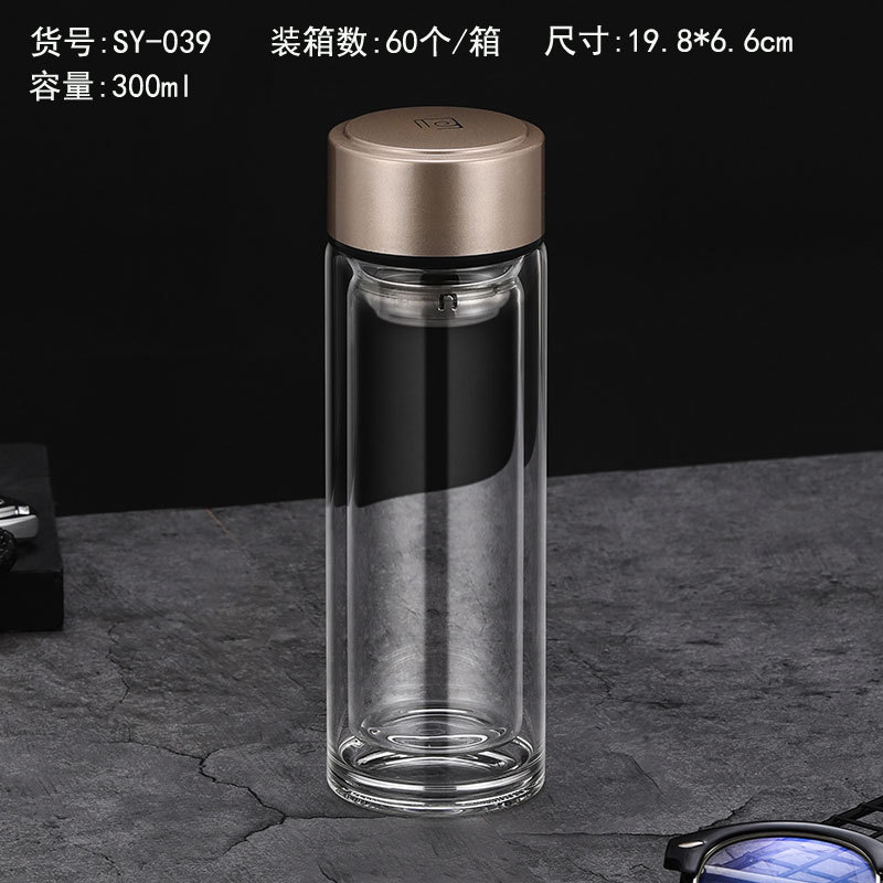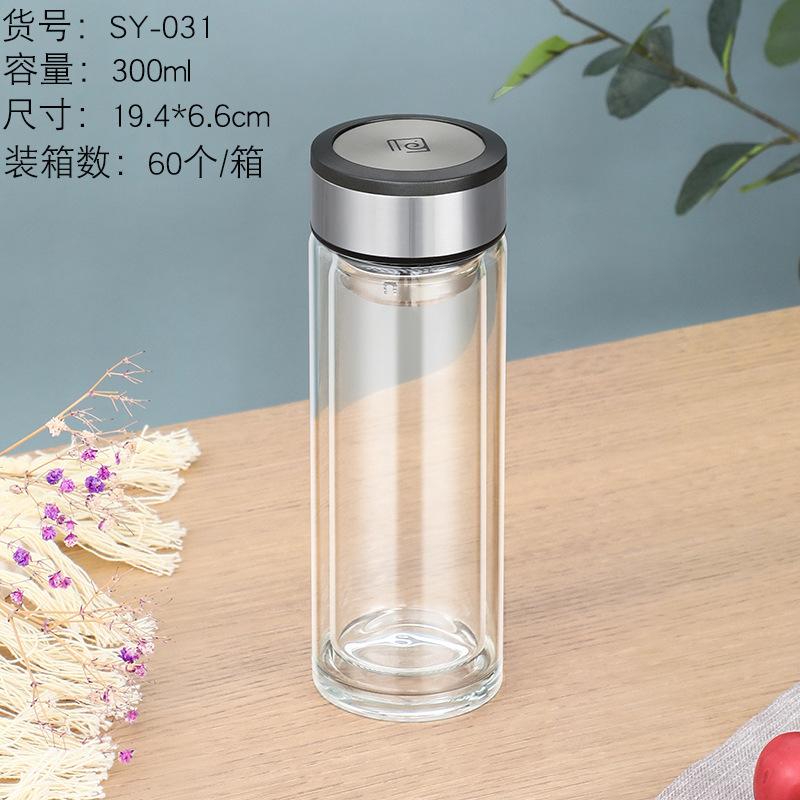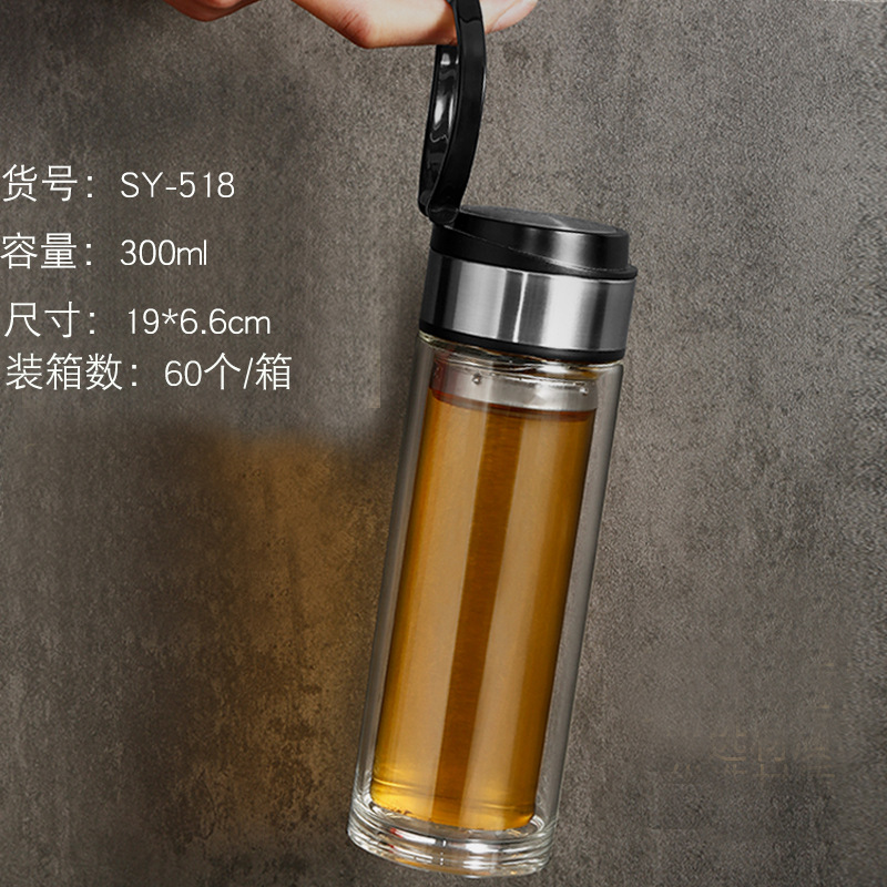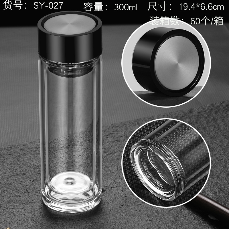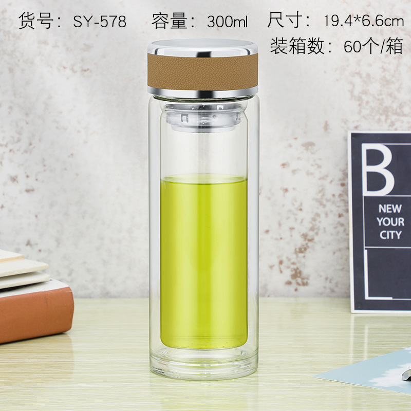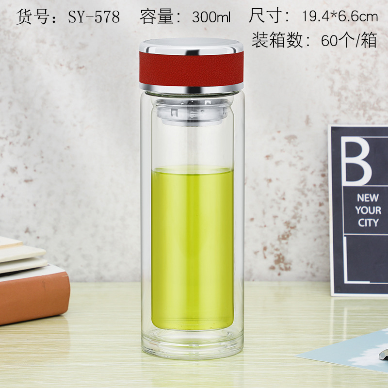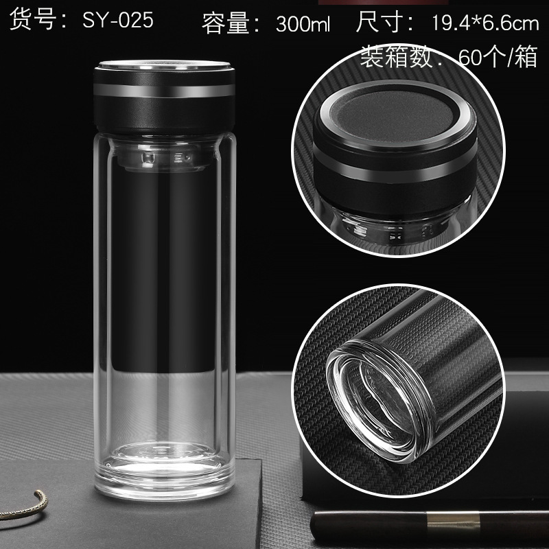批发透明双层玻璃杯印字logo广告伴手礼杯子礼品茶杯高硼硅水杯