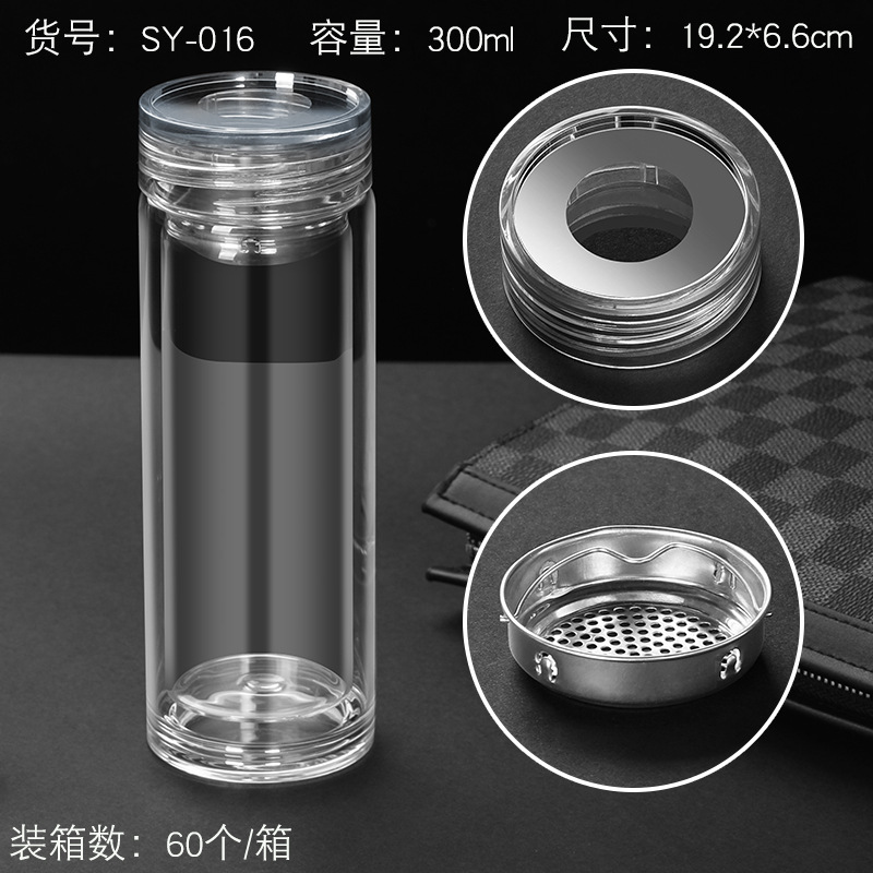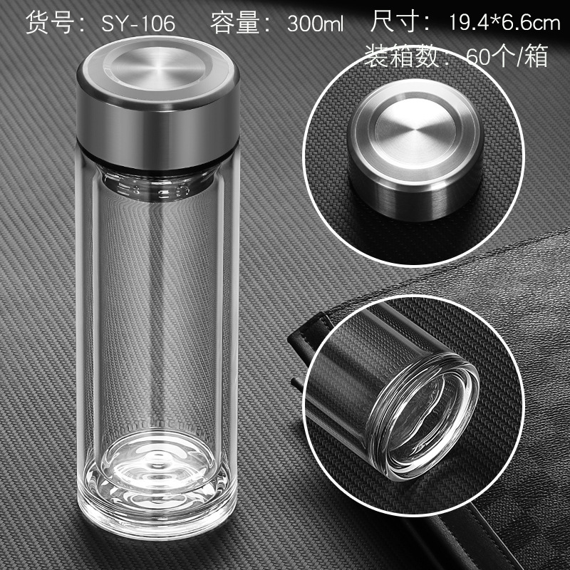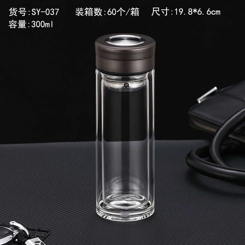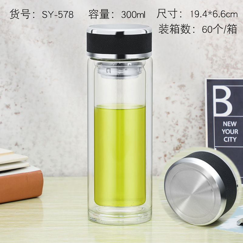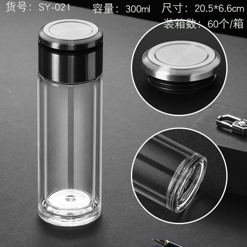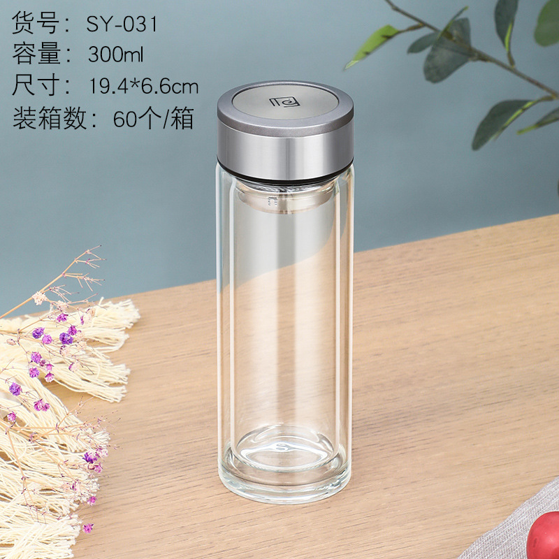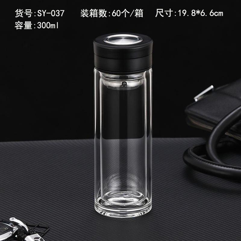 批发透明双层玻璃杯印字logo广告伴手礼杯子礼品茶杯高硼硅水杯