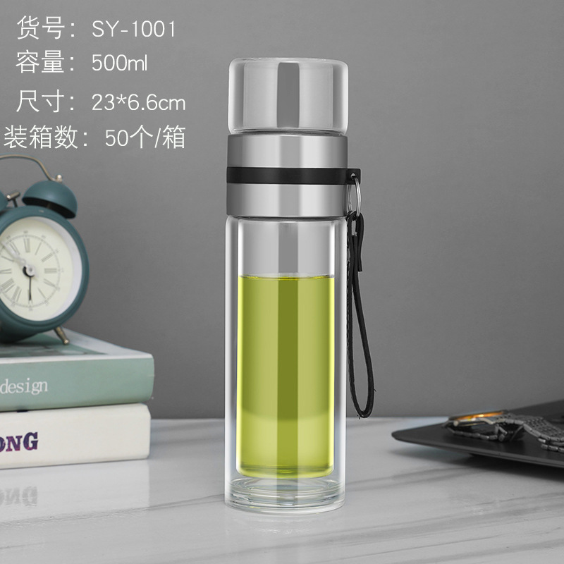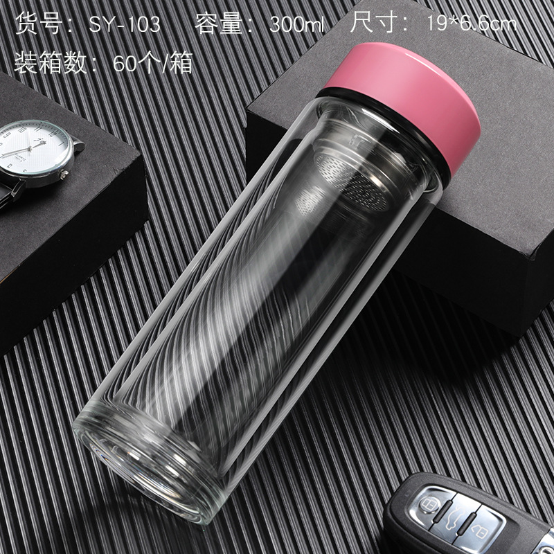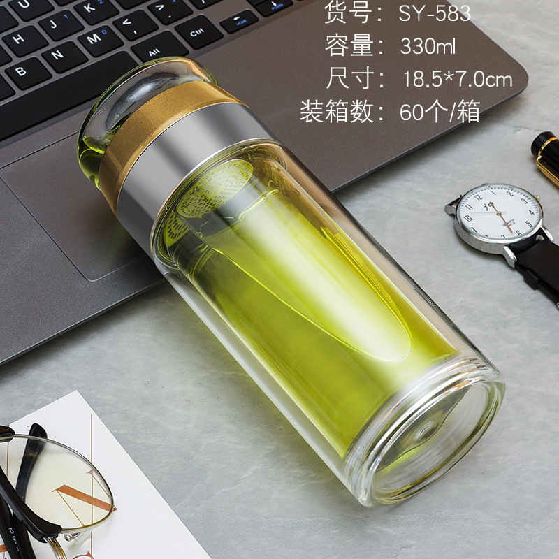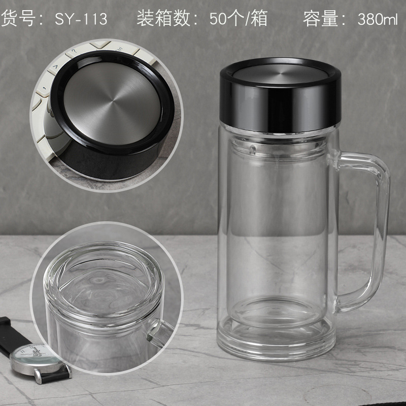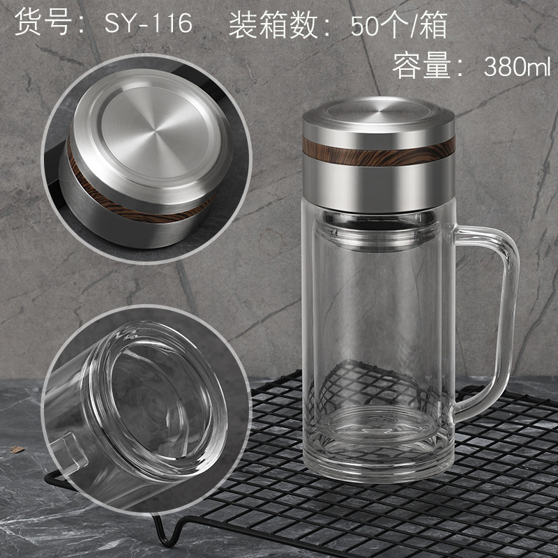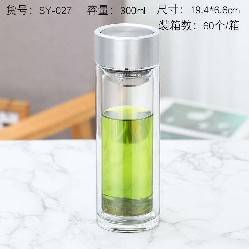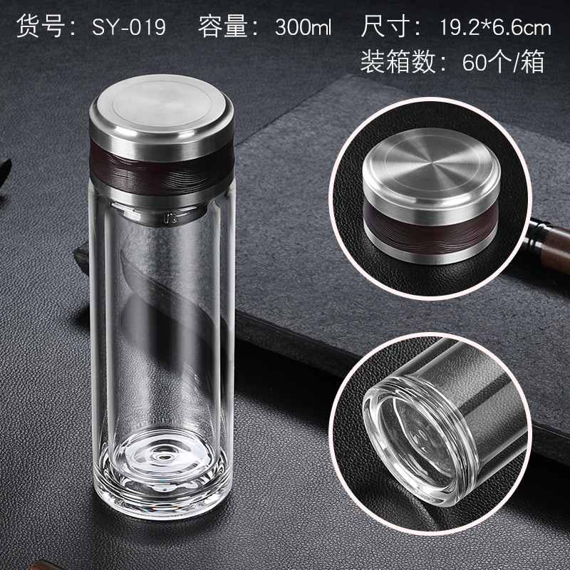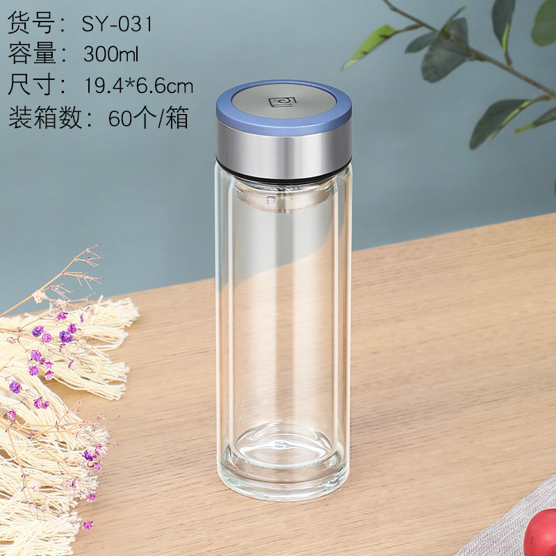 批发透明双层玻璃杯印字logo广告伴手礼杯子礼品茶杯高硼硅水杯
