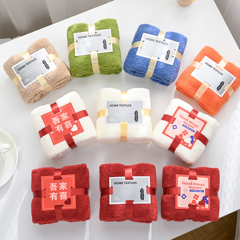 毛巾伴手礼珊瑚绒结婚回礼礼盒内搭方块毛巾喜铺节日礼物创意礼品