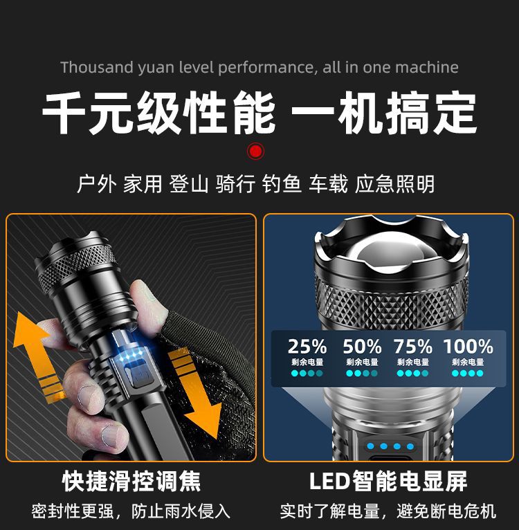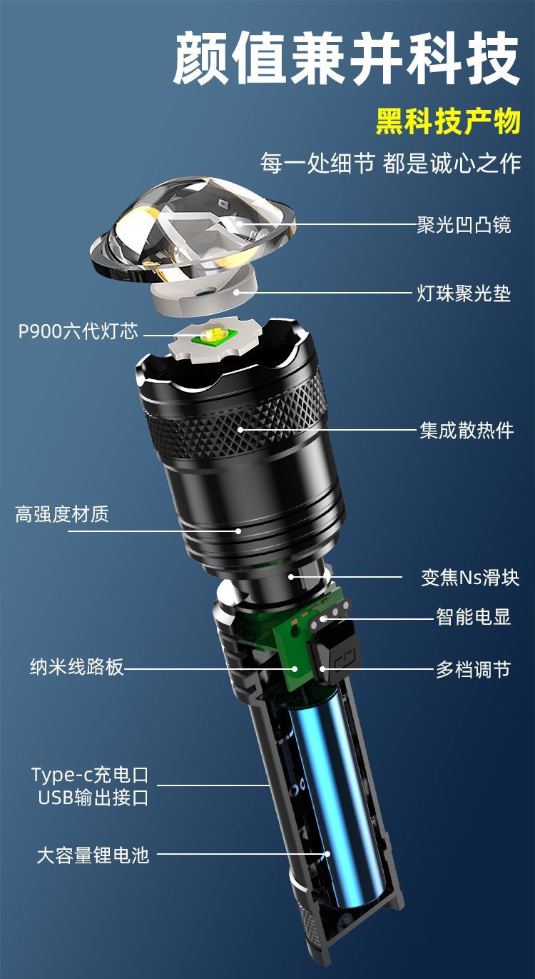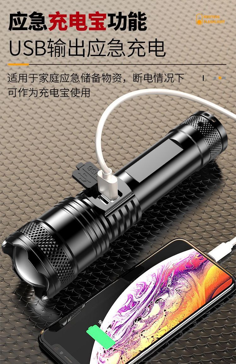 新款超强光远射手电筒户外巡逻聚光远射变焦极光炮大泛光