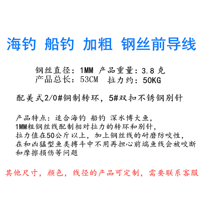 加粗路亚前导线 海钓船钓钢丝线 防咬线 手工绑制 八字环渔具配件