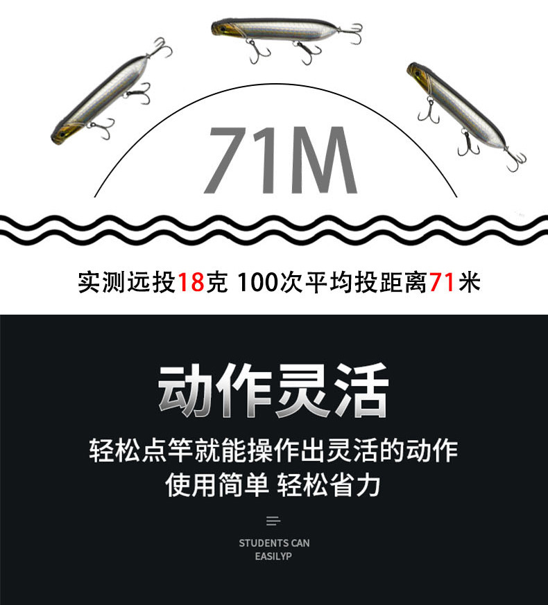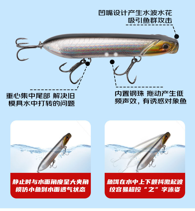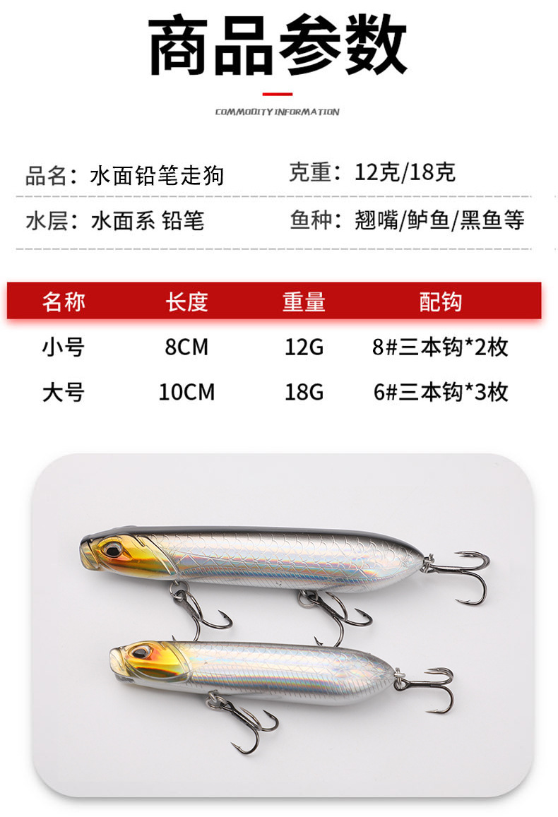 远投水面系之Z之字狗路亚饵18g 血槽钩浮水铅笔镭射假饵硬饵现货