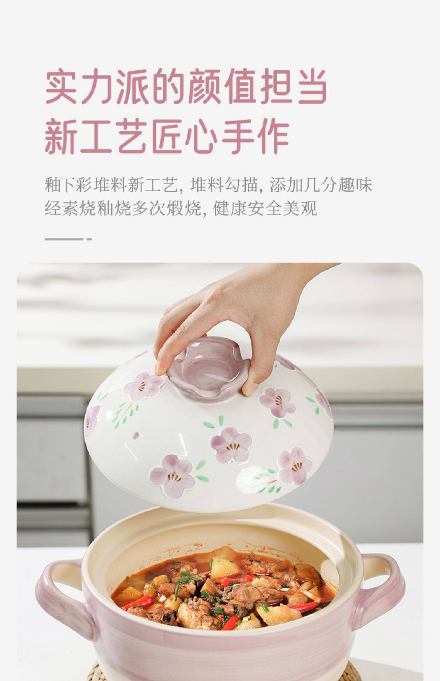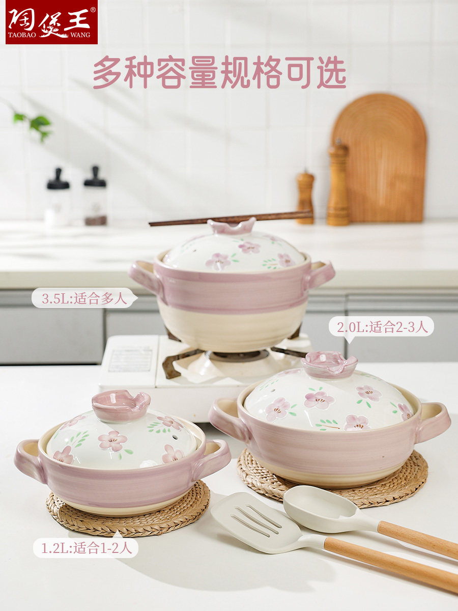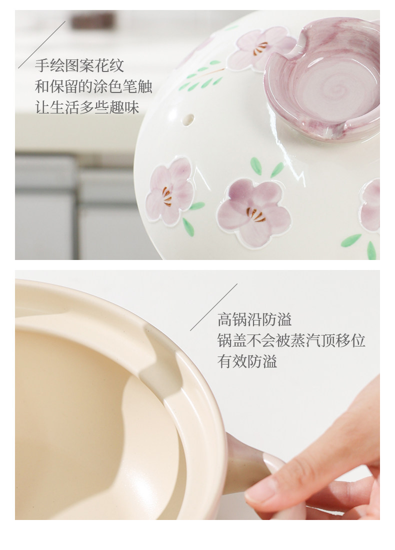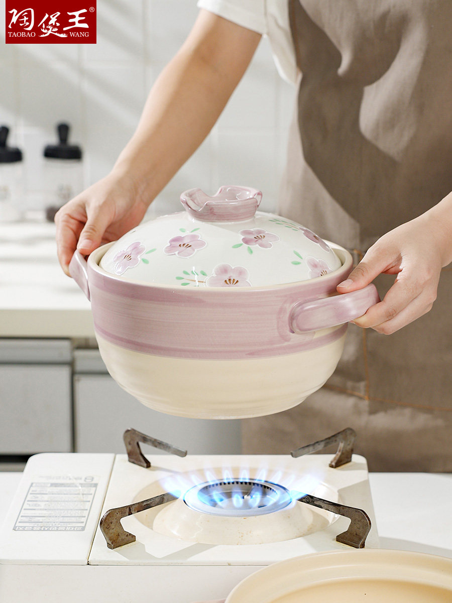 陶煲王日式小清新手绘陶土锅陶瓷煲汤砂锅耐高温炖锅家用汤锅砂锅