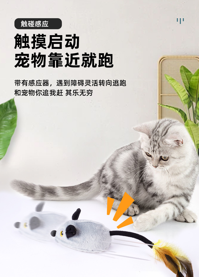 亚马逊跨境仿真遥控电动小老鼠猫咪自嗨解闷感应逗猫神器猫猫玩具