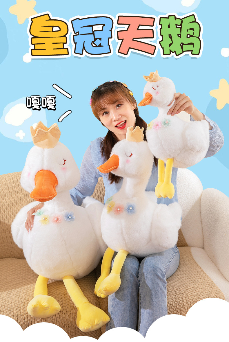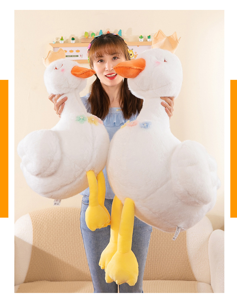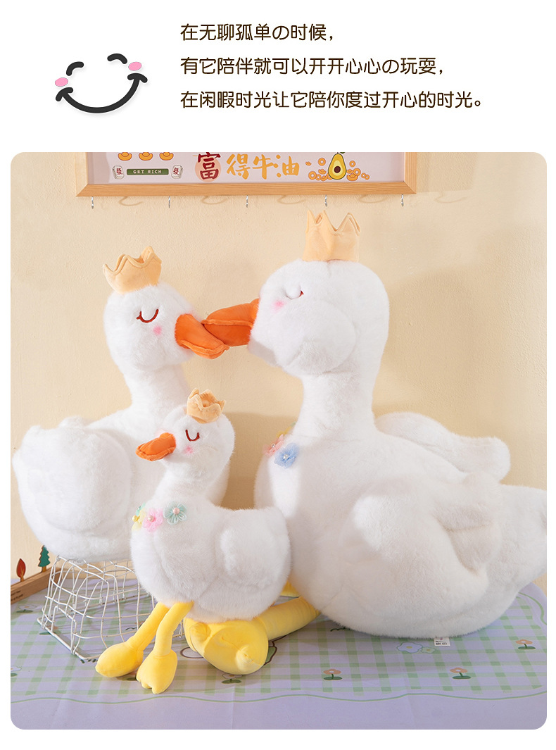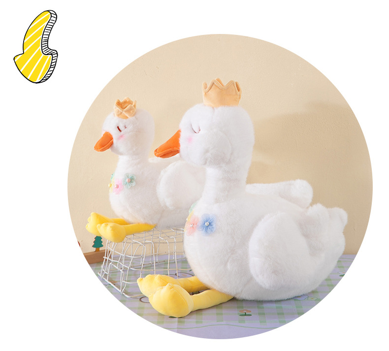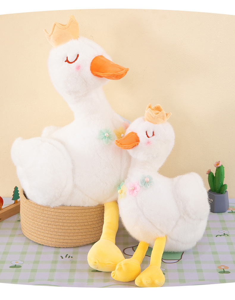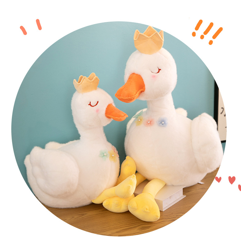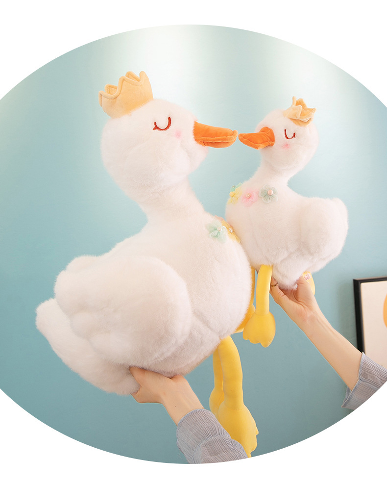 批发跨境珍珠白天鹅公主毛绒玩具少女心皇冠小鸭子布娃娃儿童礼物