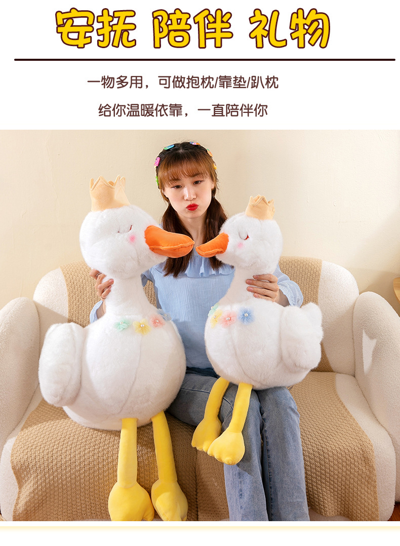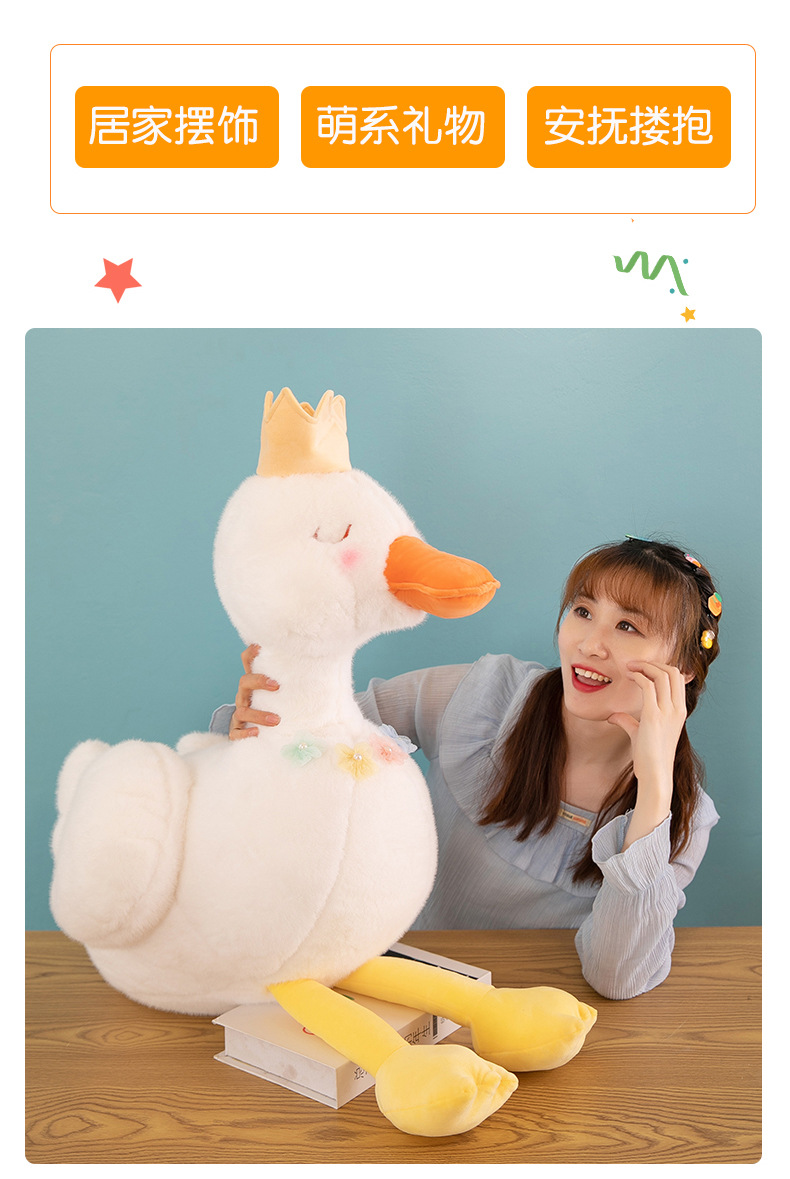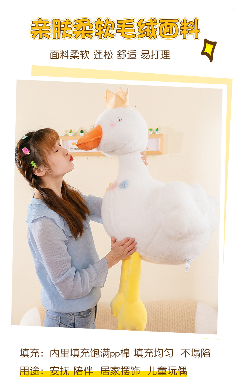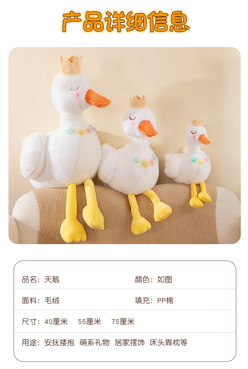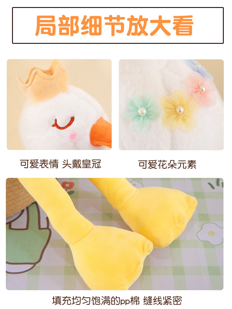 批发跨境珍珠白天鹅公主毛绒玩具少女心皇冠小鸭子布娃娃儿童礼物
