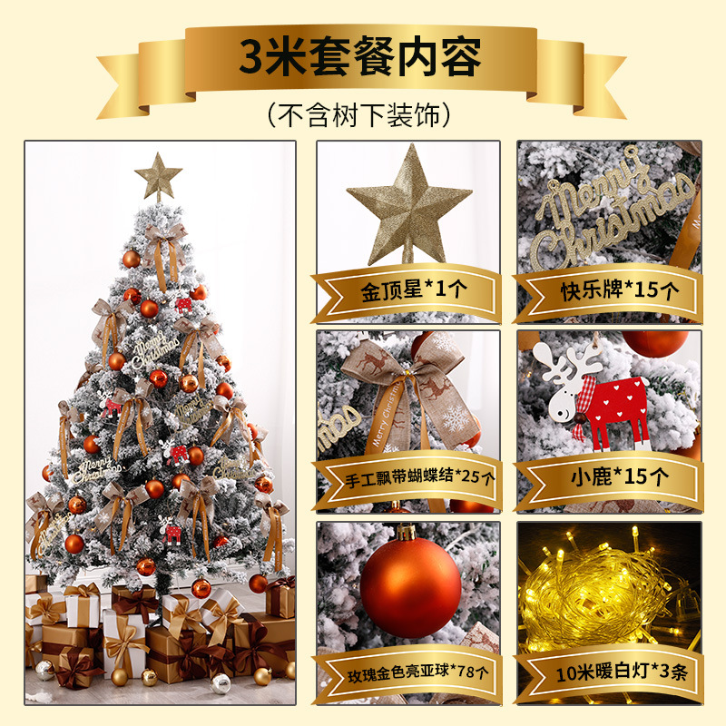 豪华加密植绒落雪款圣诞树套餐1.5/1.8/2.1/3/4米 圣诞节场景装饰