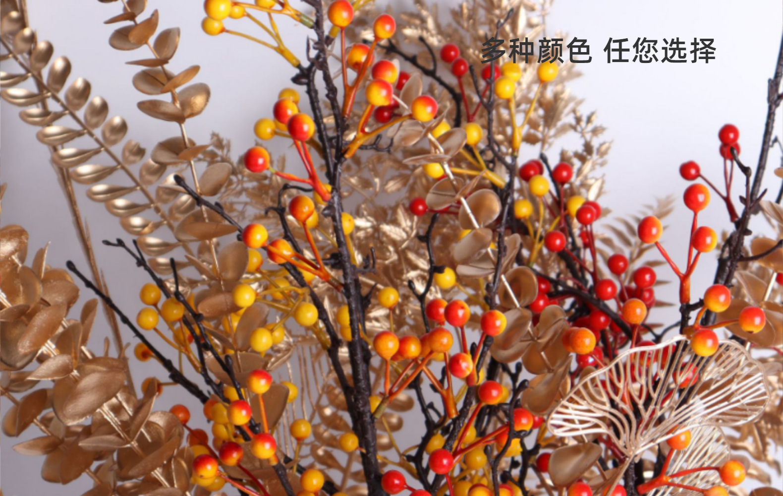 仿真金色尤加利年宵花银杏扇叶发财果仿真石榴柿子金色仿真花厂家