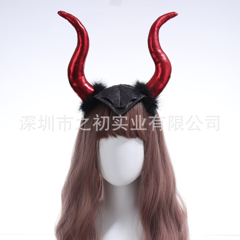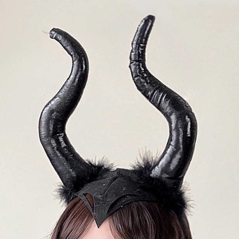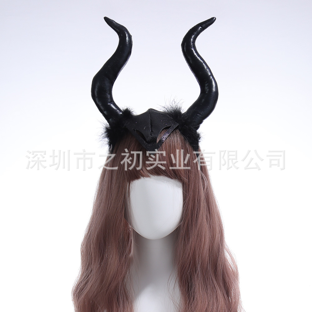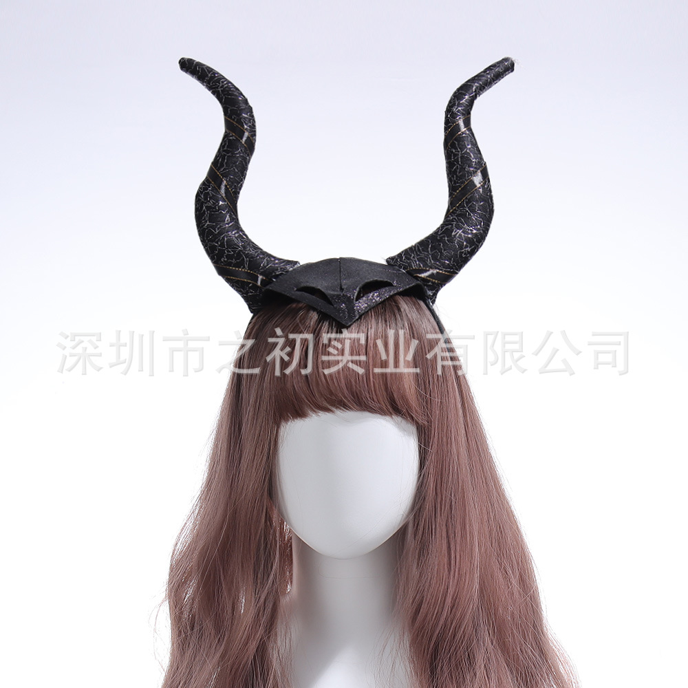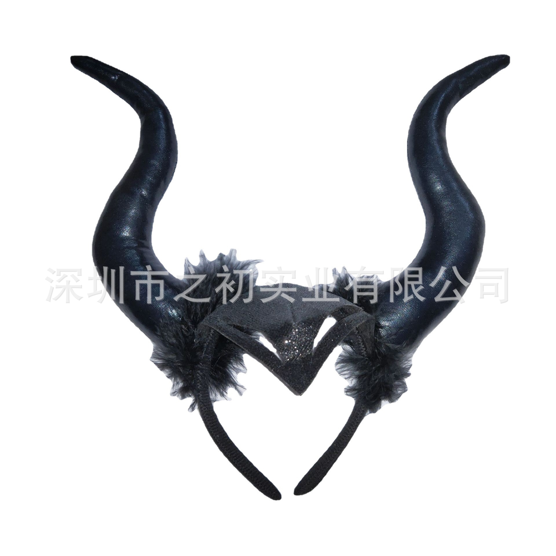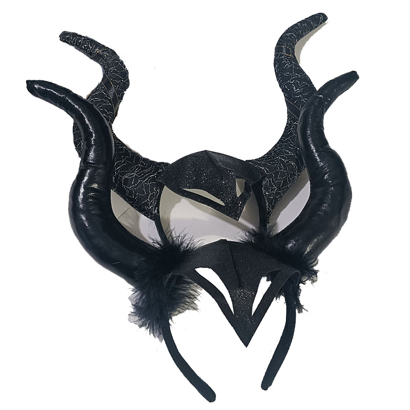 跨境热销沉睡魔咒Maleficent万圣节COS恶魔女王沉睡黑魔牛角道具
