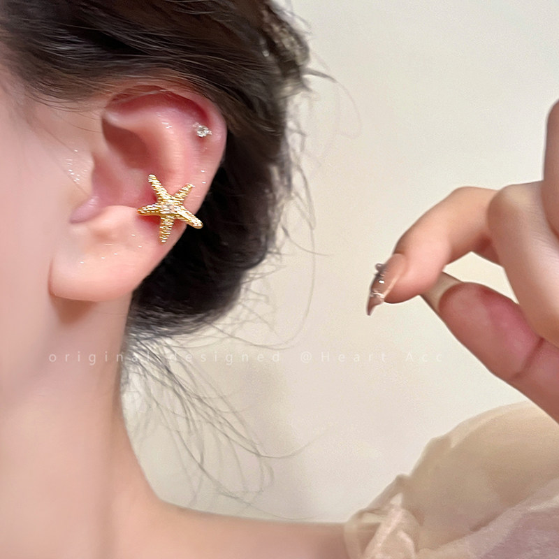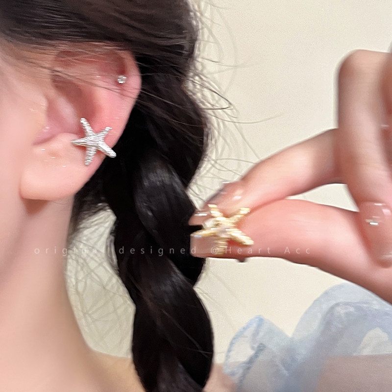 微镶海星锆石耳环女夏季海边轻奢无耳洞耳饰2024年新款气质耳骨夹