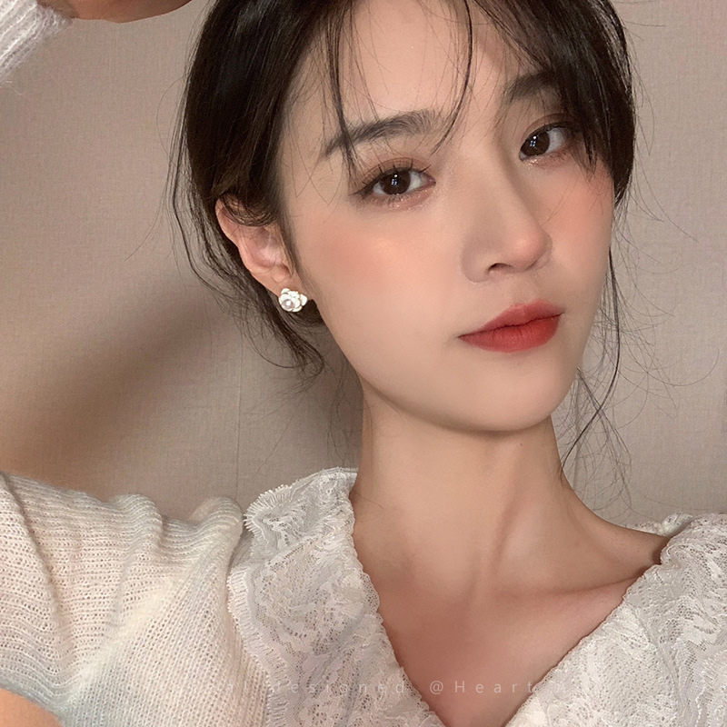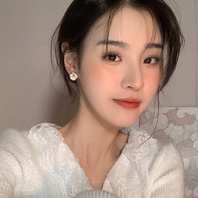 珍珠滴釉小花朵耳钉女秋冬高级感轻奢小众耳饰气质女神范茶系耳环