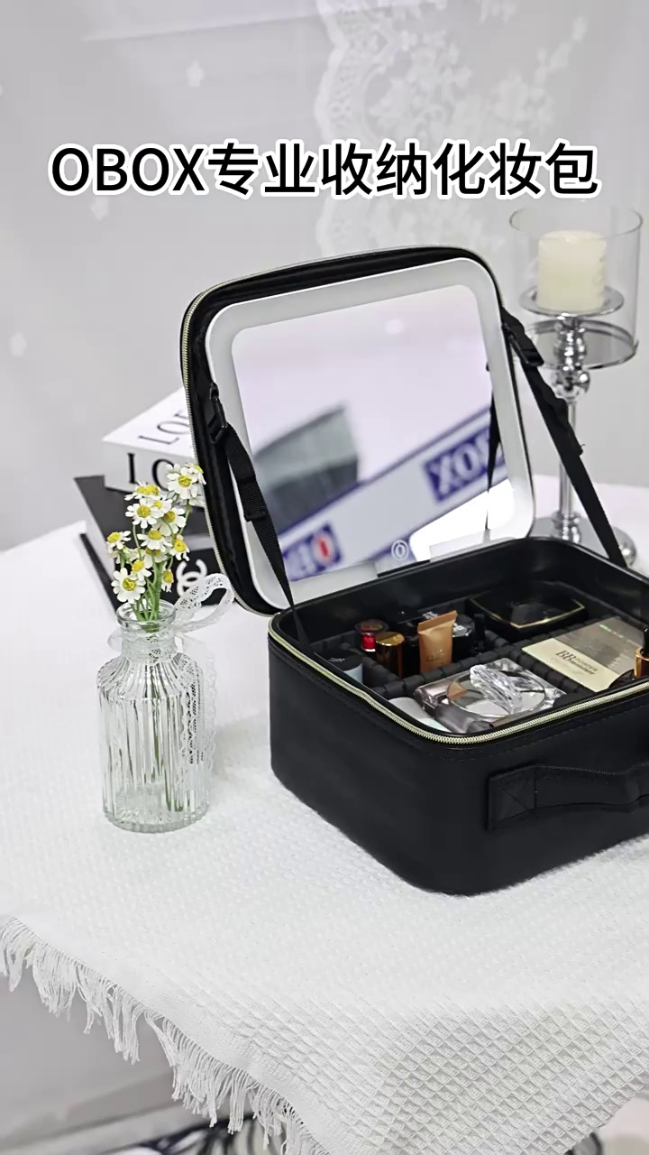 2024新款LED带灯化妆包高颜值带镜子化妆箱便携手提大容量收纳包