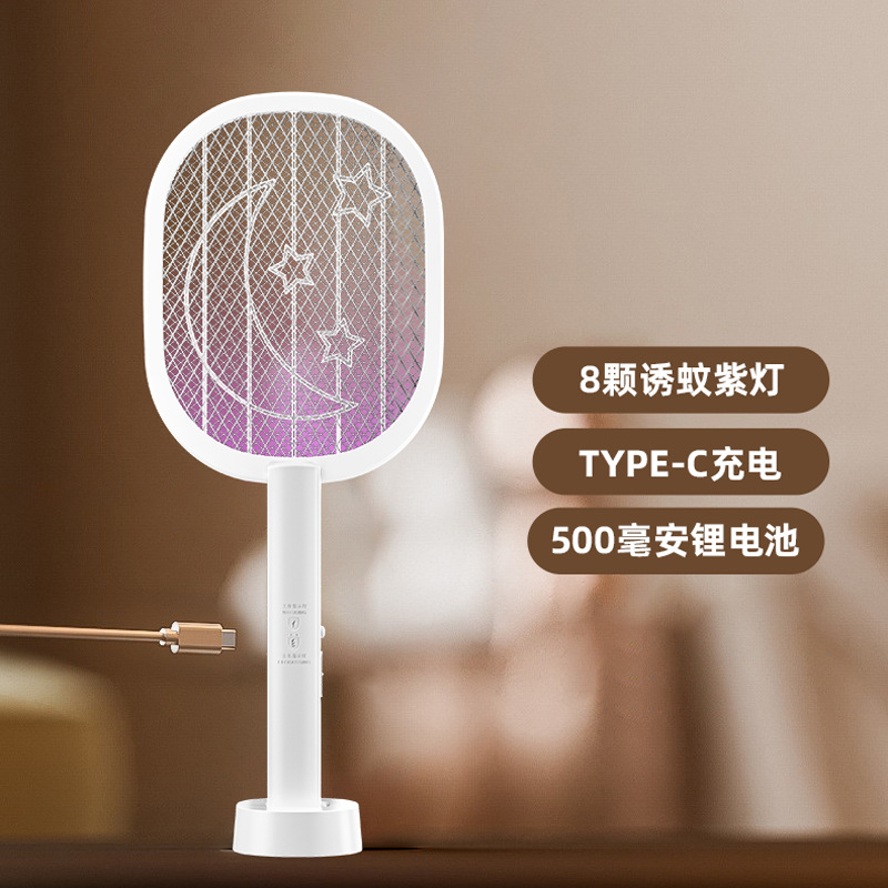 新款二合一电蚊拍USB充电式灭蚊拍电击式苍蝇拍光触媒电子灭蚊器