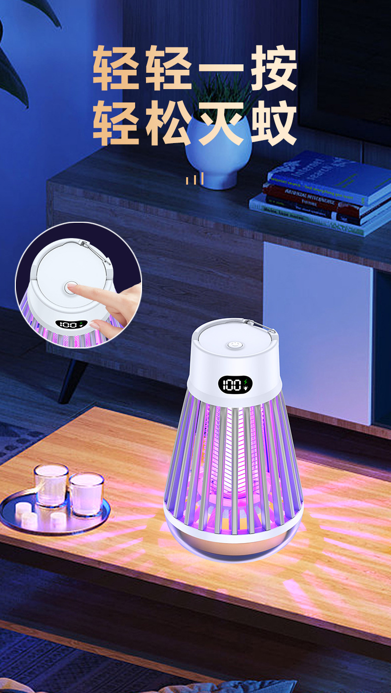 2024跨境新款静音多功能灭蚊灯二合一便携式家用灭蚊器户外露营灯
