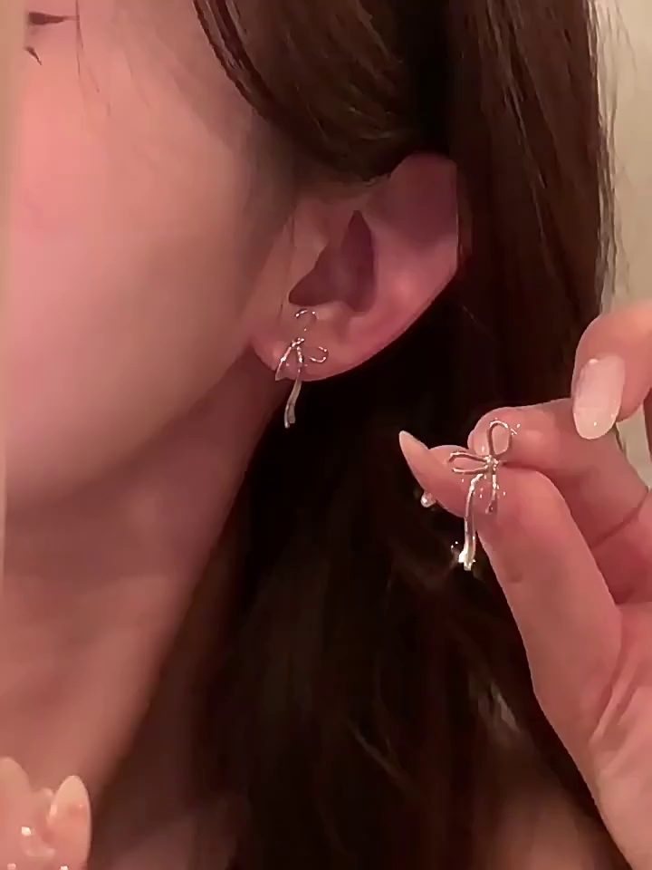 饰品S925银针百搭超仙气质金属感耳环耳饰品小众简约蝴蝶结耳钉女