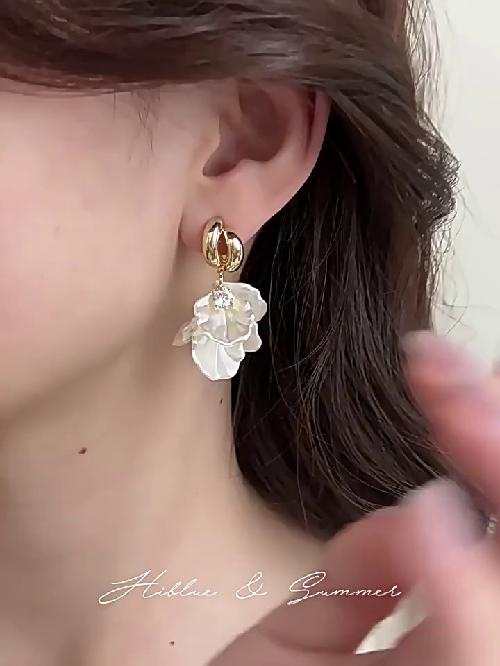 饰品S925银针小众高级感镶钻耳钉耳饰百搭气质温柔贝壳花朵耳环女