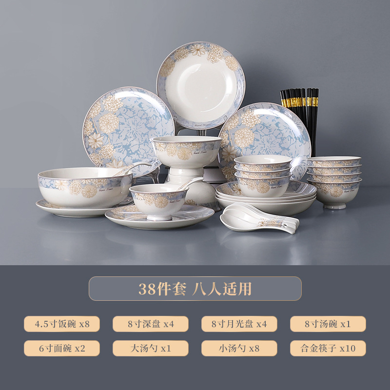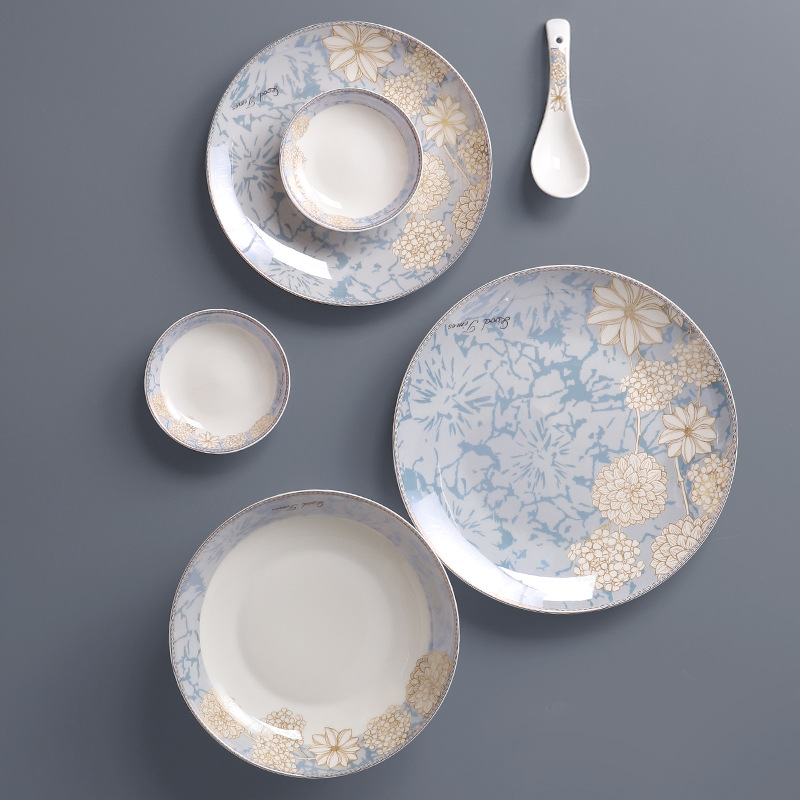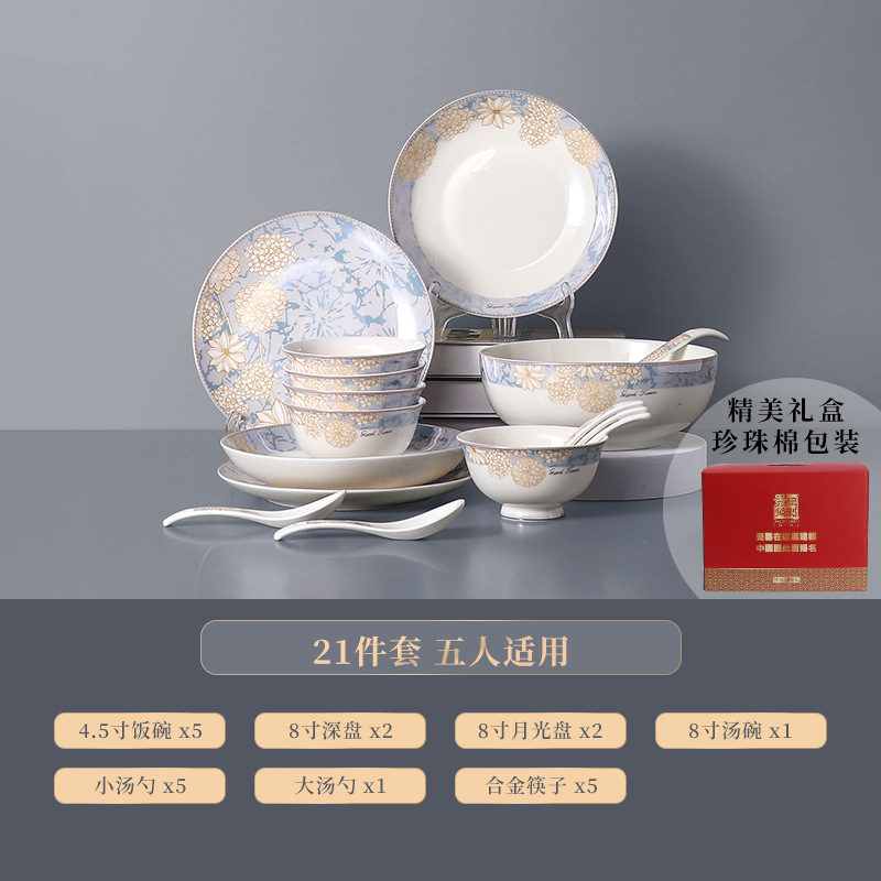 ceramic tableware set of dishes and bowls combination bowl and chopstis set household opening gift moving into the new house gift logo printing