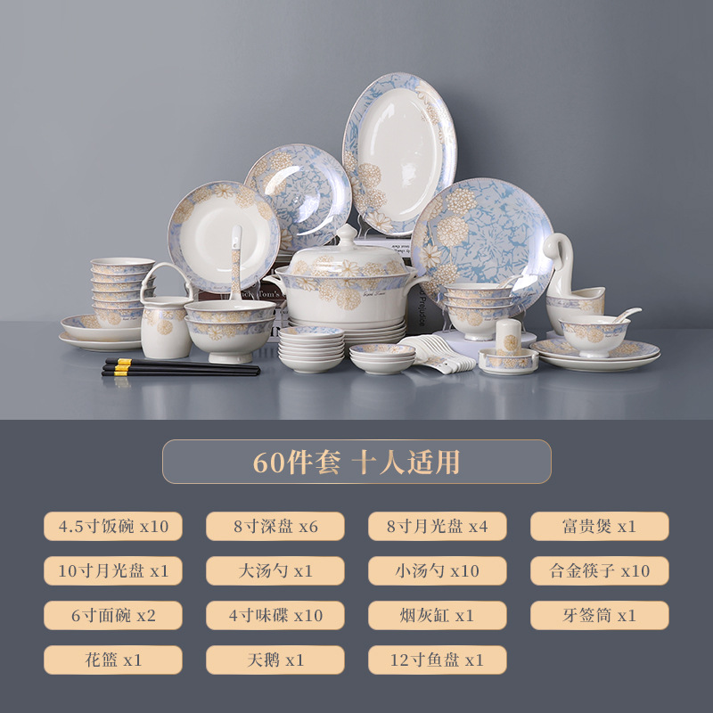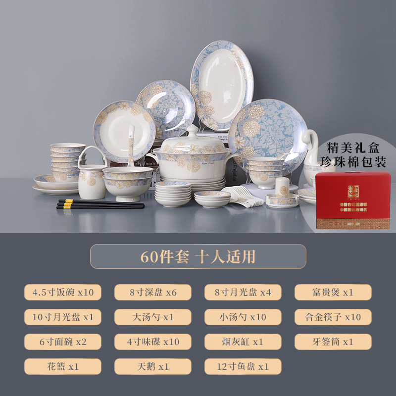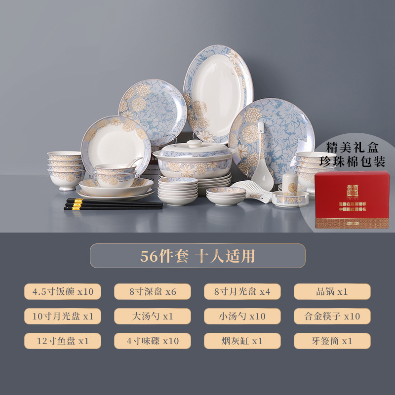 陶瓷餐具套装碗盘组合碗筷套装家用开业礼品乔迁新居送礼LOGO印制