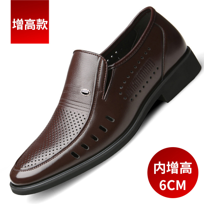 皮鞋男夏季镂空透气牛皮凉鞋男士内中老年爸爸鞋大码套脚男鞋