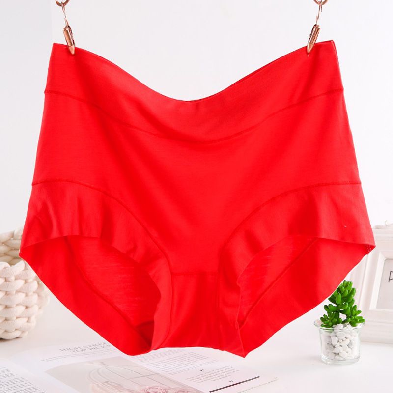 无痕莫代尔内裤女高腰大码200斤中老年红色妈妈裤头三角裤红批发
