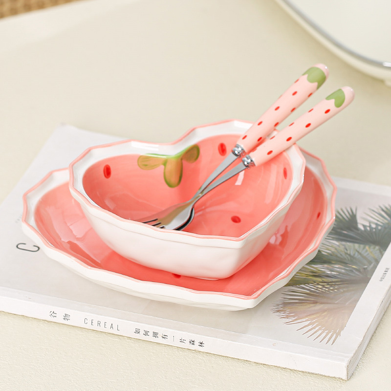 【手提盒】碗盘不锈钢叉勺套装礼品盒情侣粉色中式釉下彩餐具套装