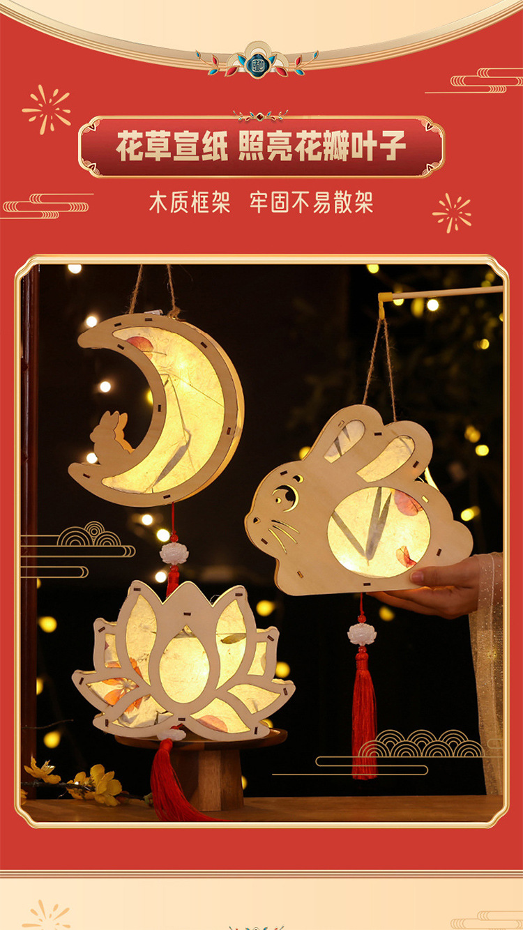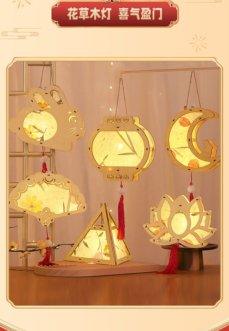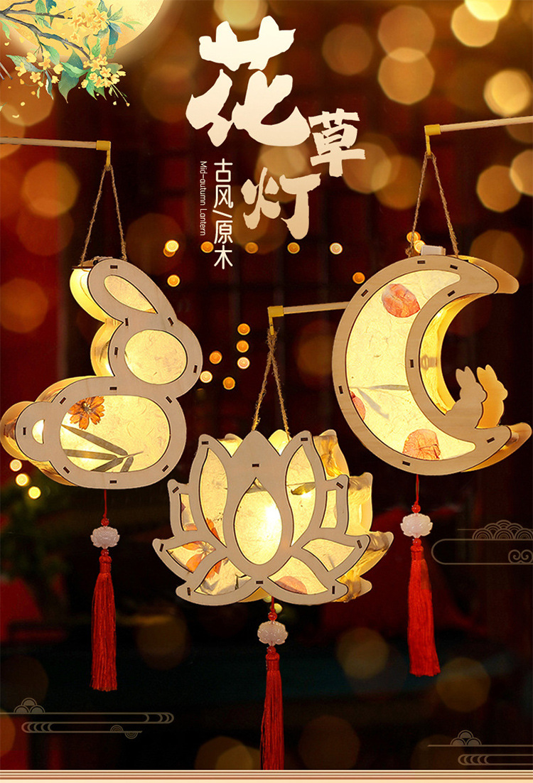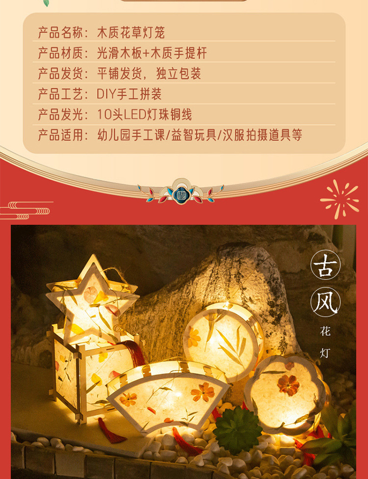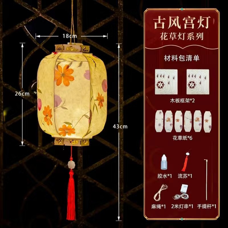 手提古风非遗花草灯笼儿童手工diy材料包汉服中秋节宫灯摆摊批发