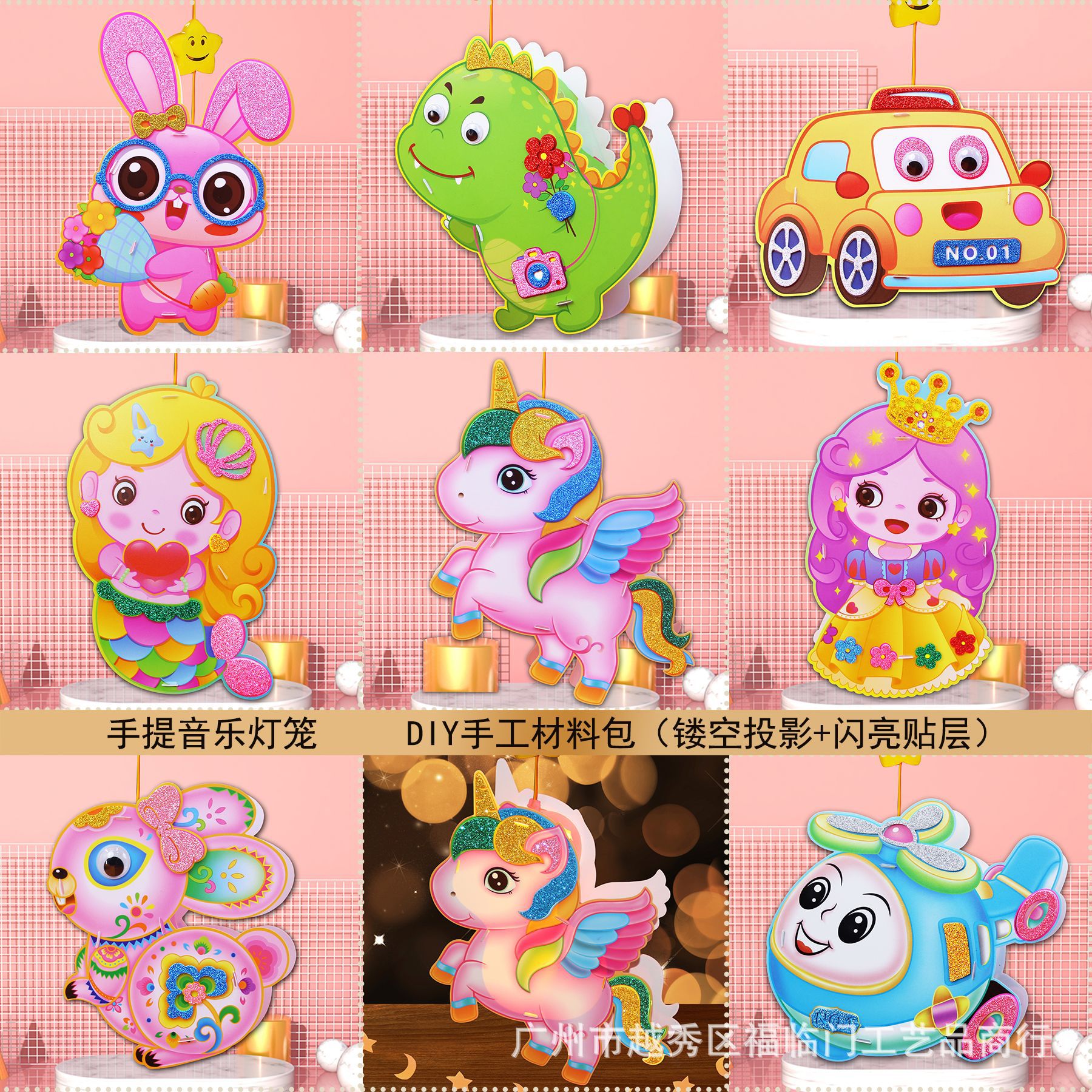 儿童手提灯笼中秋灯笼卡通发光玩具幼儿园diy手工材料包PVC灯笼