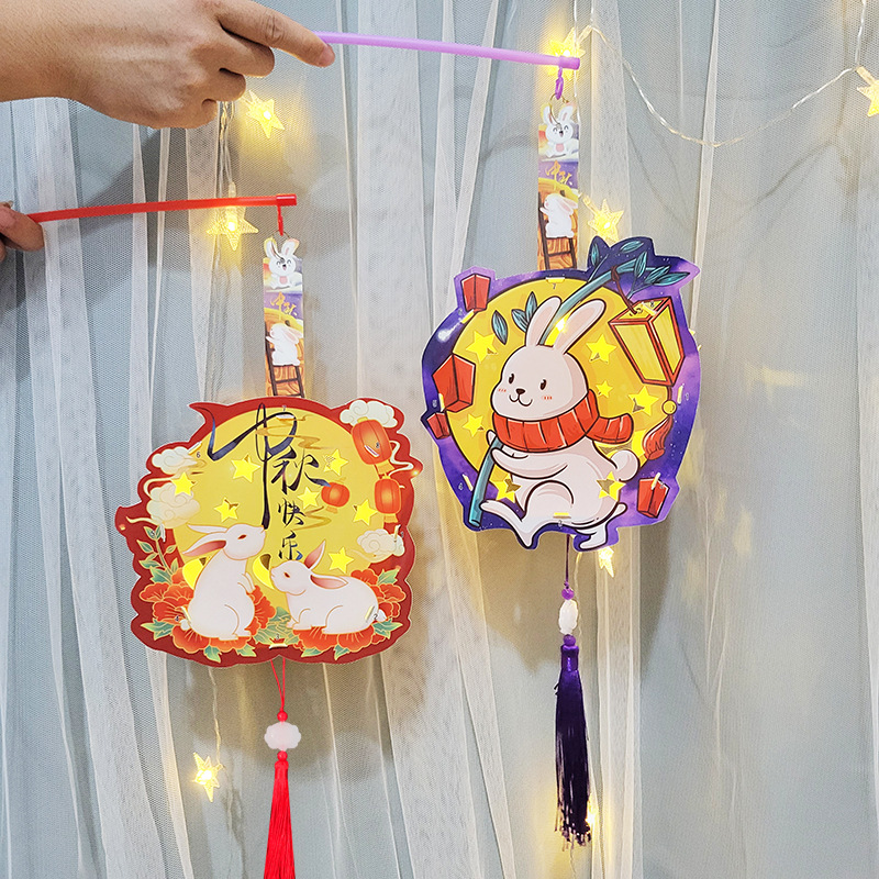 新款DIY中秋投影灯笼儿童手提发光卡通走马灯材料包国潮手工创意