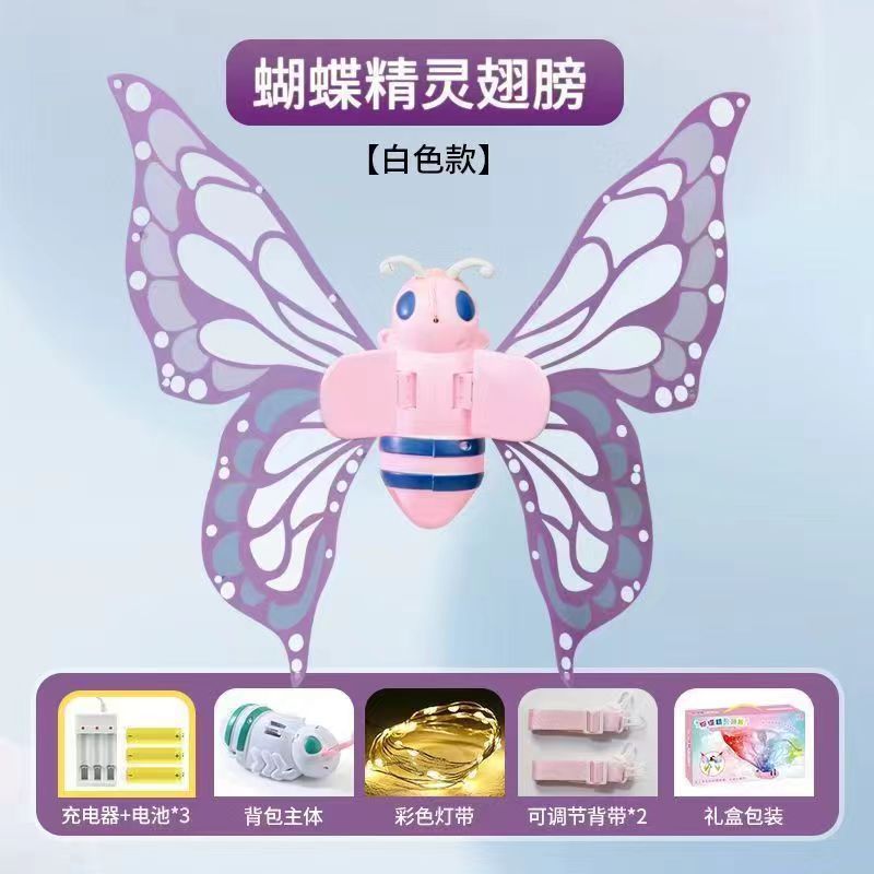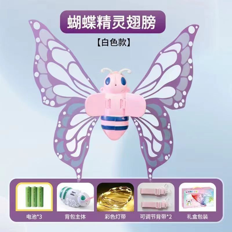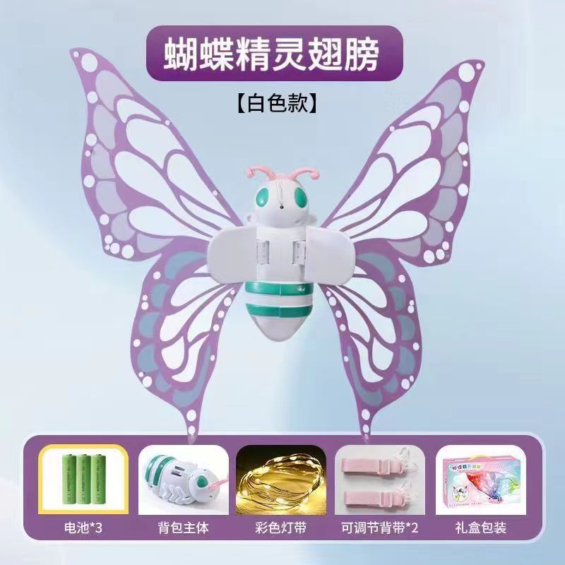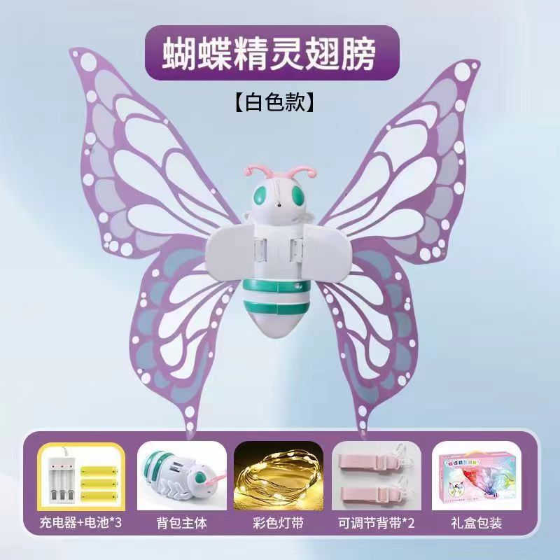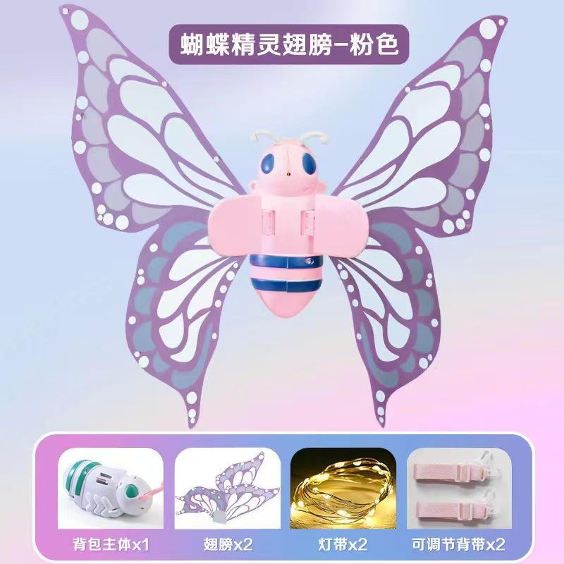 儿童发光电动蝴蝶翅膀背饰精灵天使羽翼会动夜市摆摊礼物玩具