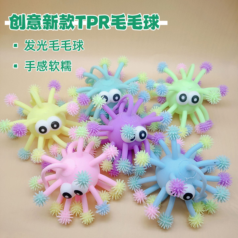 创意新款T毛毛球 5寸凸眼雪花发光毛毛球 闪光地摊玩具