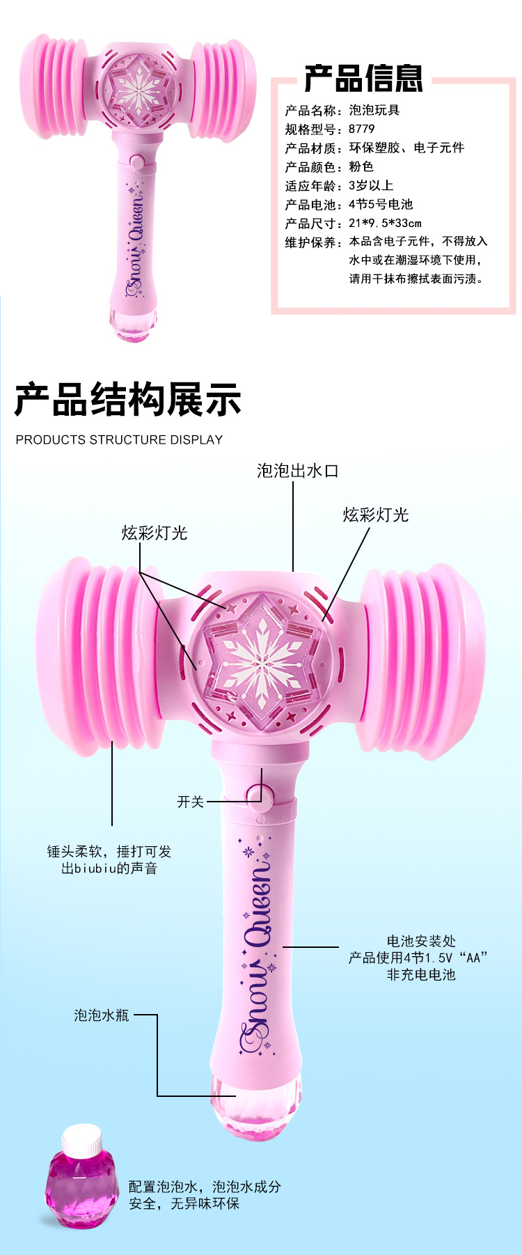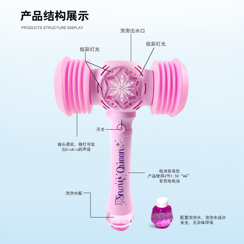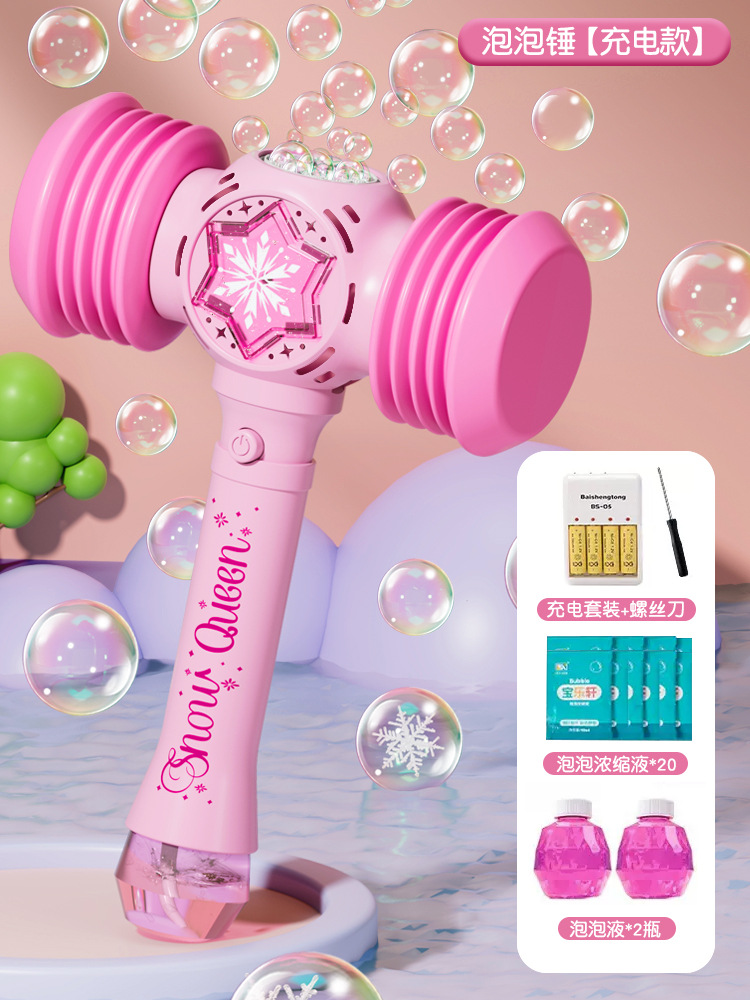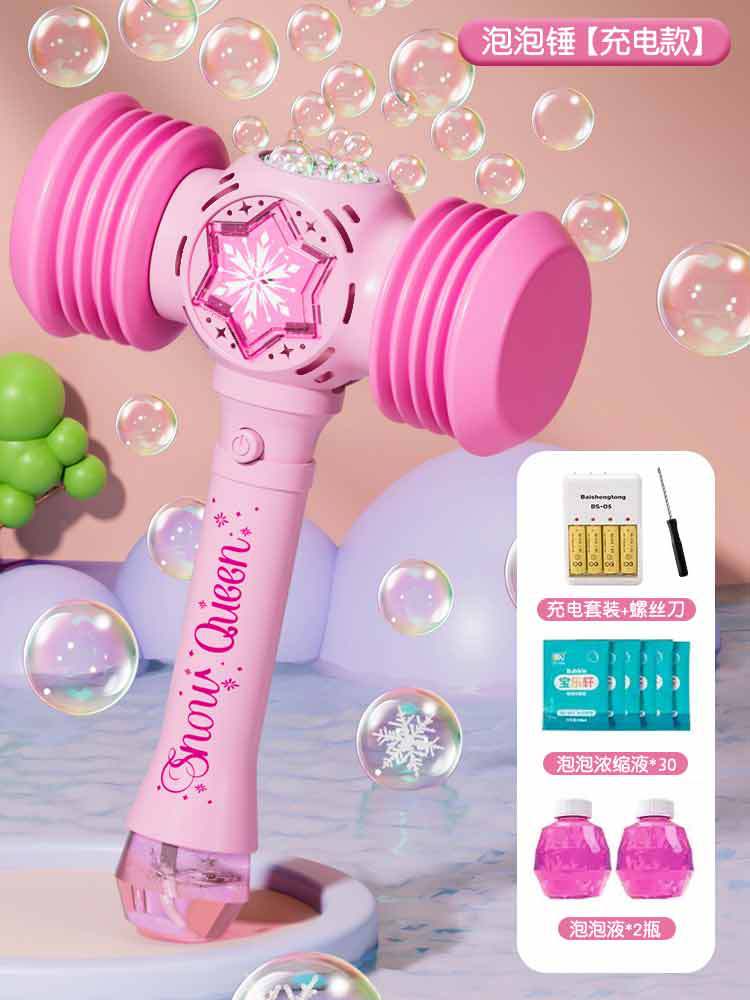 吹泡泡机儿童手持枪魔法棒锤子玩具女孩公主2024小粉发光爱心仙女